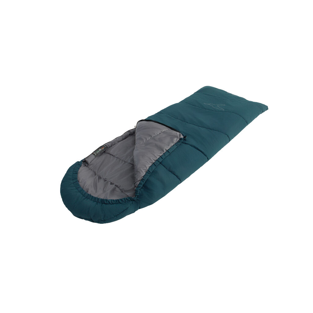 Prisvenlig børnesovepose, der passer til store dele af campingsæsonen, fra sen forår til tidlig efterår. Takket være sin firkantede form og det behageligt børstede for, får barnet masser af plads i soveposen samt et blødt materiale direkte mod huden. Den justerbare hætte minimerer luftgennemstrømningen på kolde nætter, og i varmere vejr kan soveposen åbnes helt og bruges som et almindeligt tæppe.