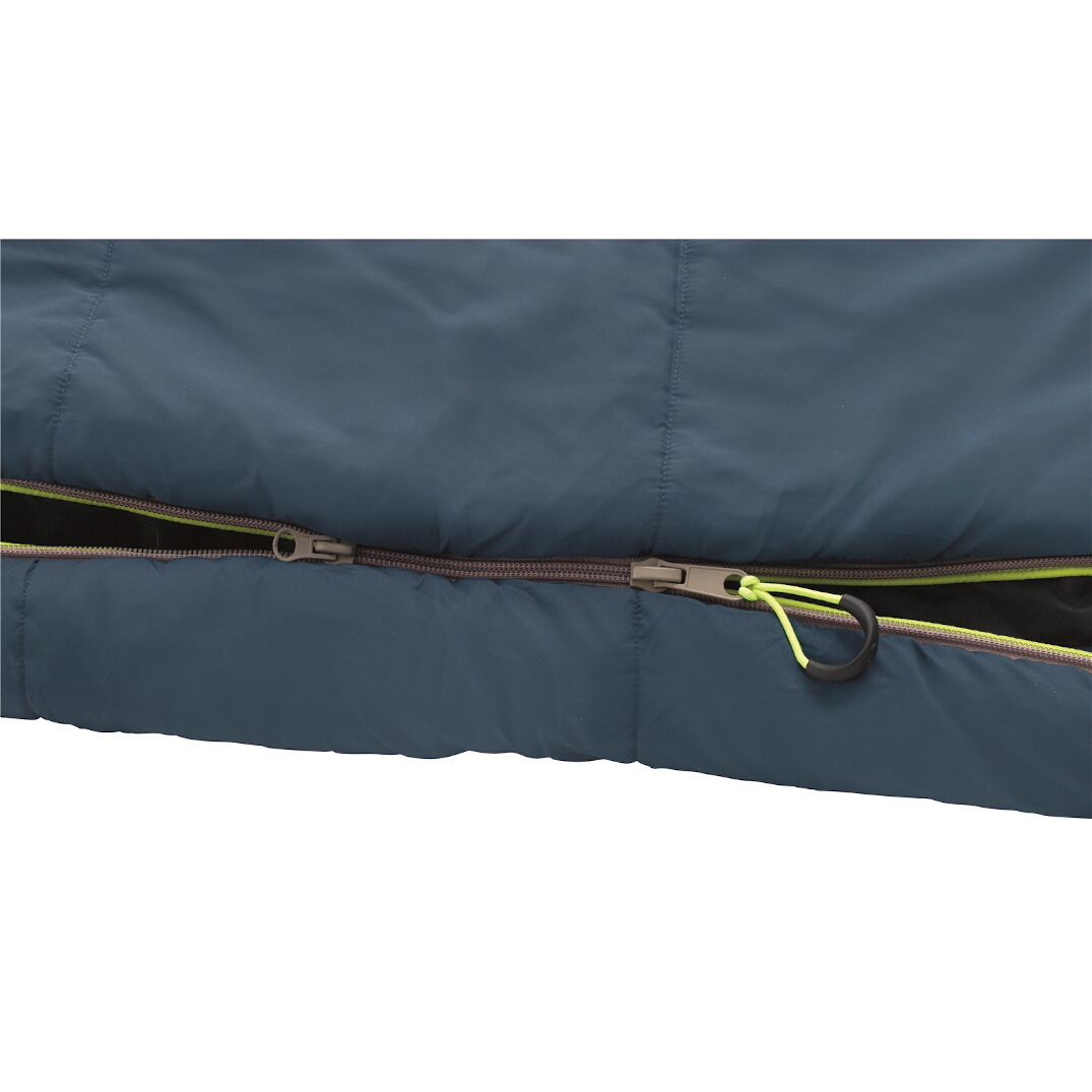 Sovepose med et 2-lags Isofill-premium fyld betyder, at den kan bruges fra det tidlige forår til langt ud på efteråret. Soveposens bløde inderside kombineret med ægformen giver god komfort, uanset om du ligger på siden eller bevæger dig meget om natten. Hvis det bliver for varmt, kan du altid åbne soveposen helt eller delvist, og takket være tovejs-lynlåsen kan den også åbnes nedefra. Lynlåsen er beskyttet af en isolationskant med fyld, og den har også ekstra isolering omkring halsen, der forhindrer varmelækage.