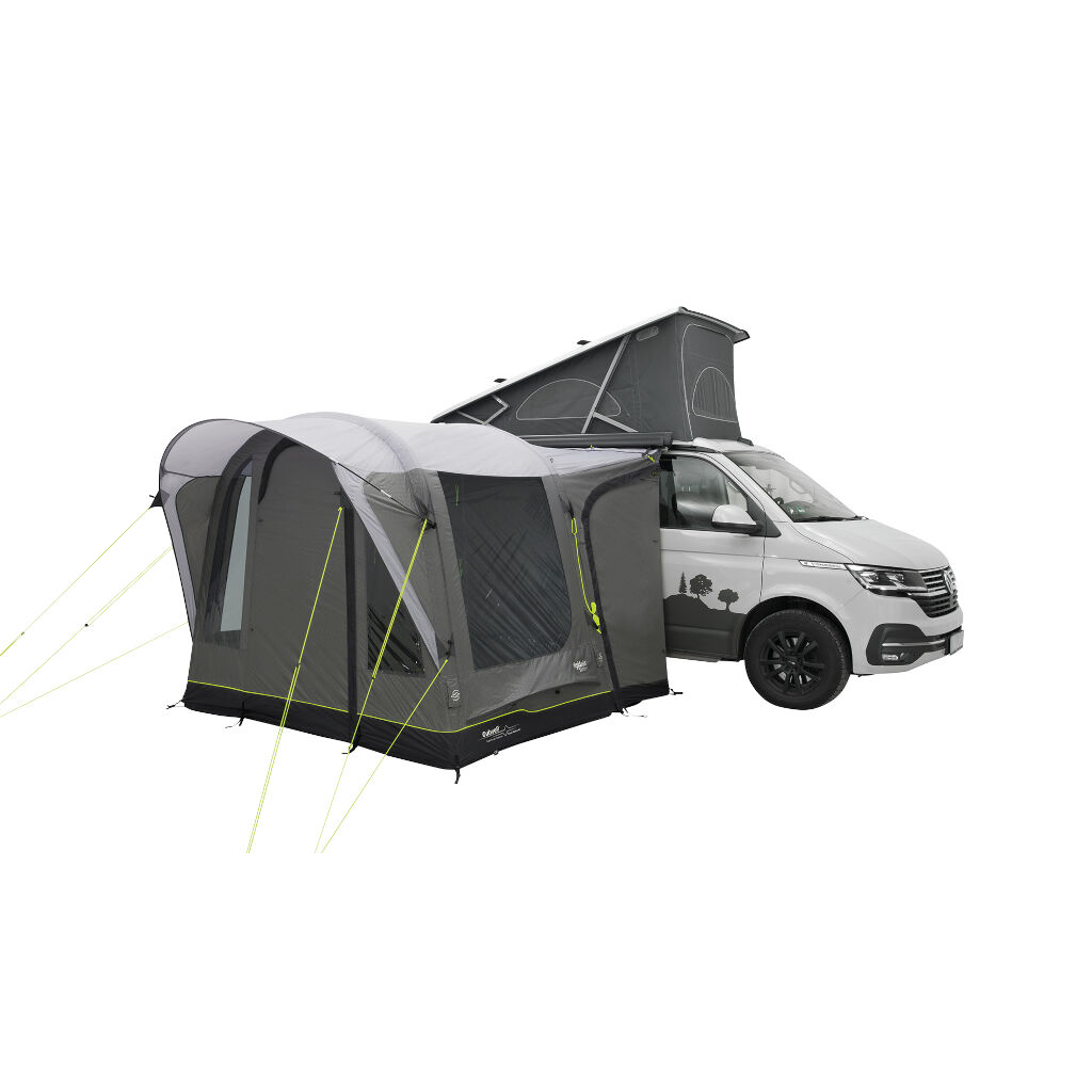Outwell Santa Monica Air er et fritstående bustelt, der bruger luftkanaler i stedet for teltstænger. Med et gulvareal på 170 x 260 cm og vinklet luftkanaler tilbyder teltet fremragende plads. Teltet er helt fritstående, så det kan nemt efterlades på campingpladsen under en tur med bilen. Et rummeligt opholdsrum med tonede vinduer gør dette til et særdeles prisvenligt bustelt til campingferien. Slusen passer til biler med en højde mellem 175 og 200 cm.