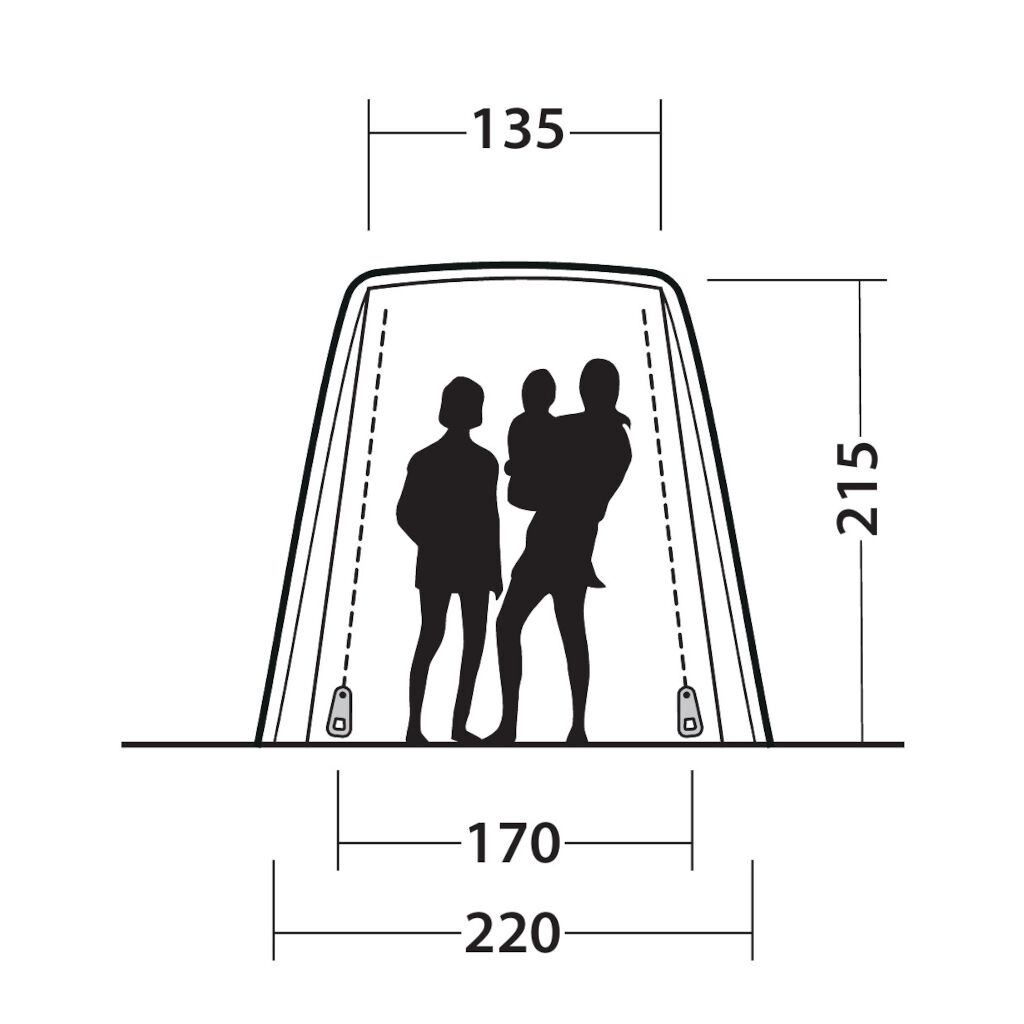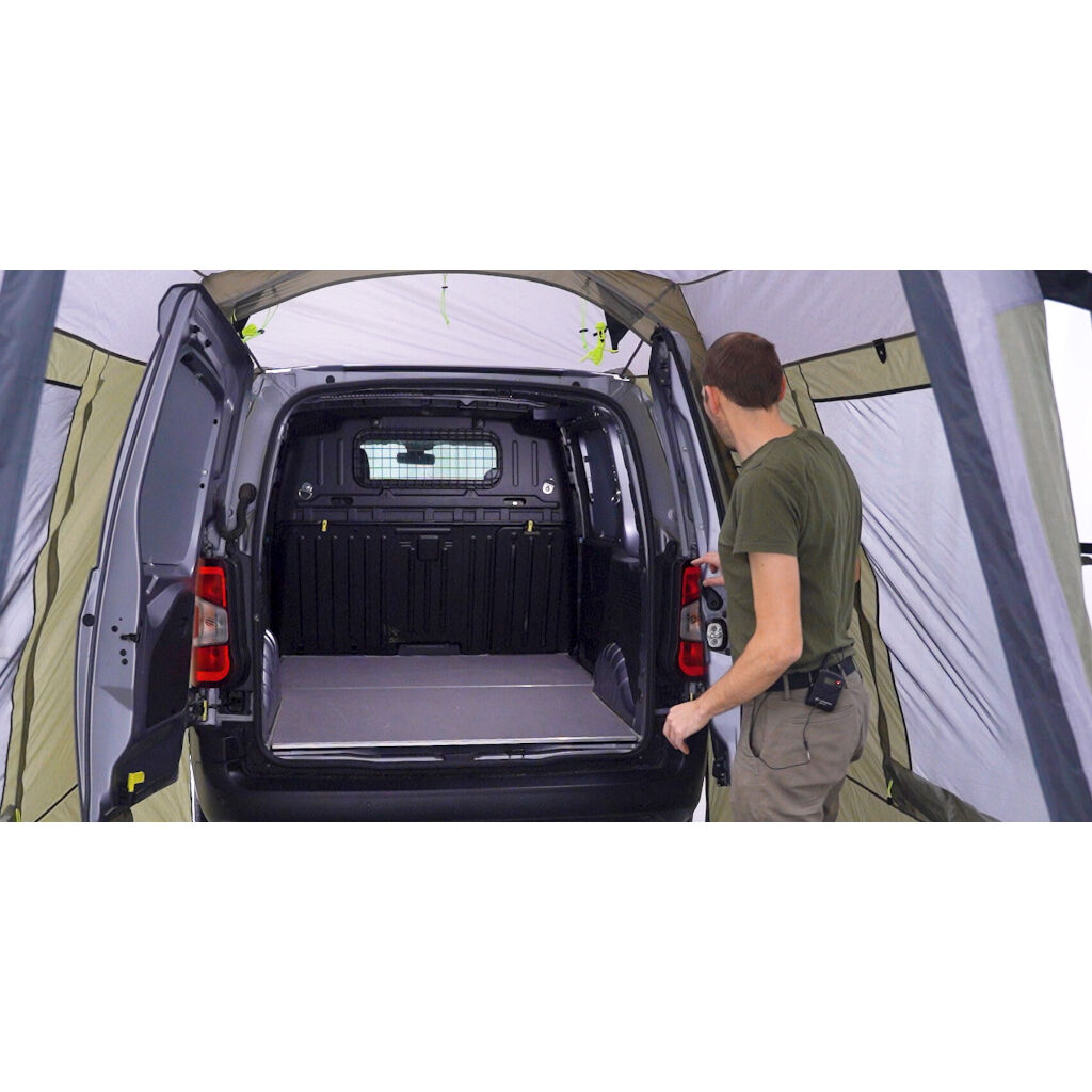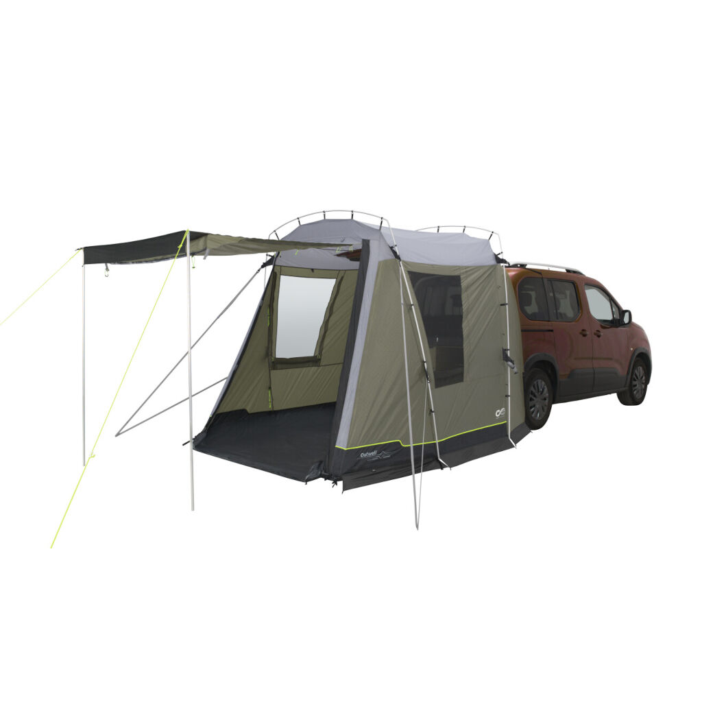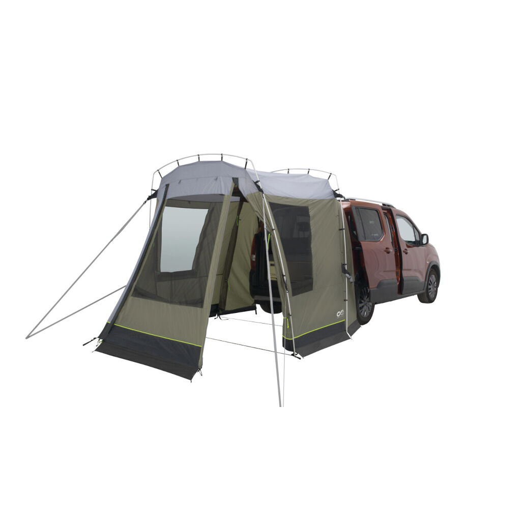 Outwell Dunecrest S er et fritstående telt, der placeres mod autocamperens eller bilens bagklap. Perfekt til at skabe ekstra plads til madlavning, udstyr eller til at sidde i dårligt vejr. Teltet er pakkevenligt og takket være et holdbart stof og aluminiumsstænger meget robust. Fastgørelsen til køretøjet strammes til køretøjets bagdøre, mod bagdækkene, og med justerbare jordfæste. Teltet er udviklet til Peugeot Rifter, Citroën Berlingo, VW Caddy og lignende køretøjer med en højde mellem 170 og 185 cm.