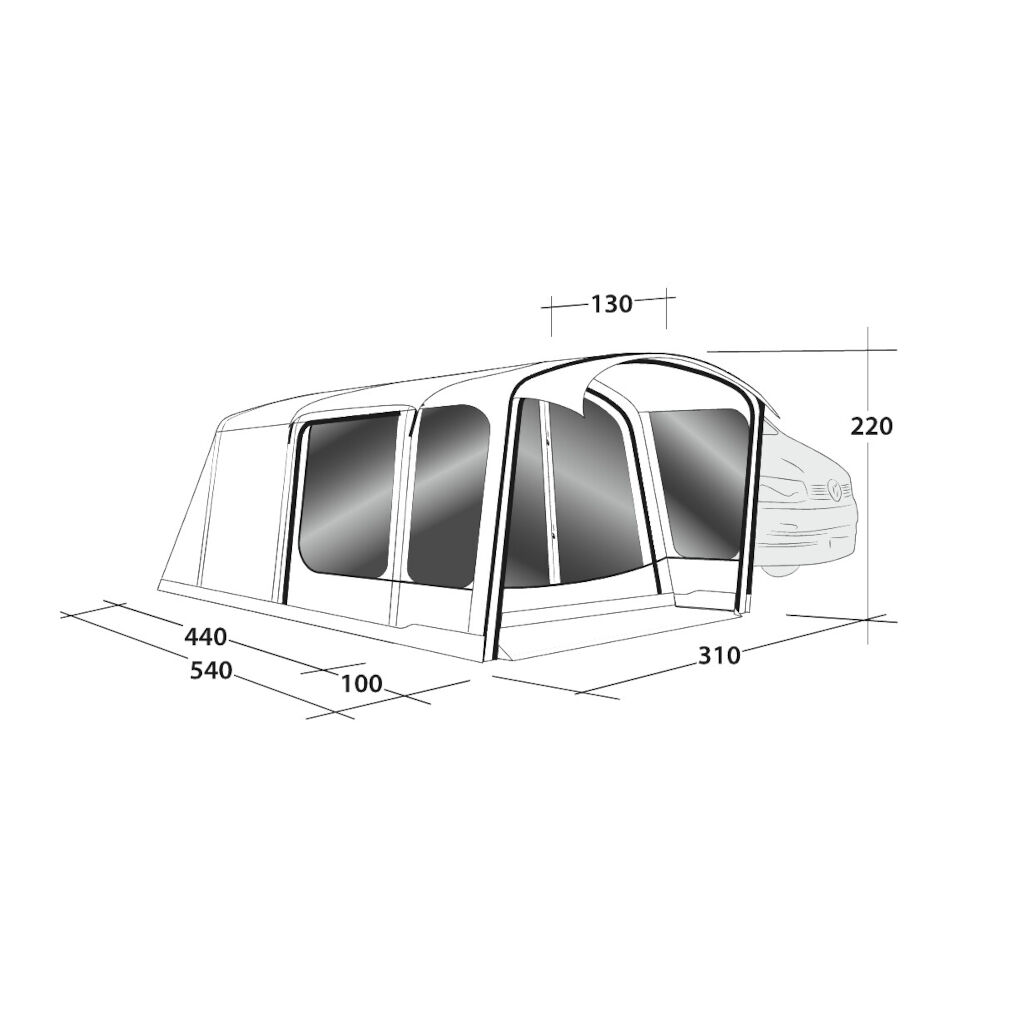 Outwell Jonesville 440SA er et biltelt med rigtig høj komfort. Takket være, at teltet løber langs bilen i stedet for lige ud, har Outwell givet det en længde på hele 540 cm, hvilket giver masser af plads til at socialisere i teltet, selv når man bruger en sovekabine. De bøjede luftkanaler giver god loftshøjde i store dele af teltet. Både bilen og teltet er nemt tilgængelige enten via den store dør foran, teltets sidedør eller de små døre på siderne af slusen. På varme dage kan hele fronten åbnes for at skabe en beskyttet udendørsplads. Hvis der er insekter i nærheden, er det bare at trække myggenettet foran eller på teltets sidedøre. Teltet har også et fastsyet gulv, som fjerner træk og holder insekter ude samt reducerer kondens.