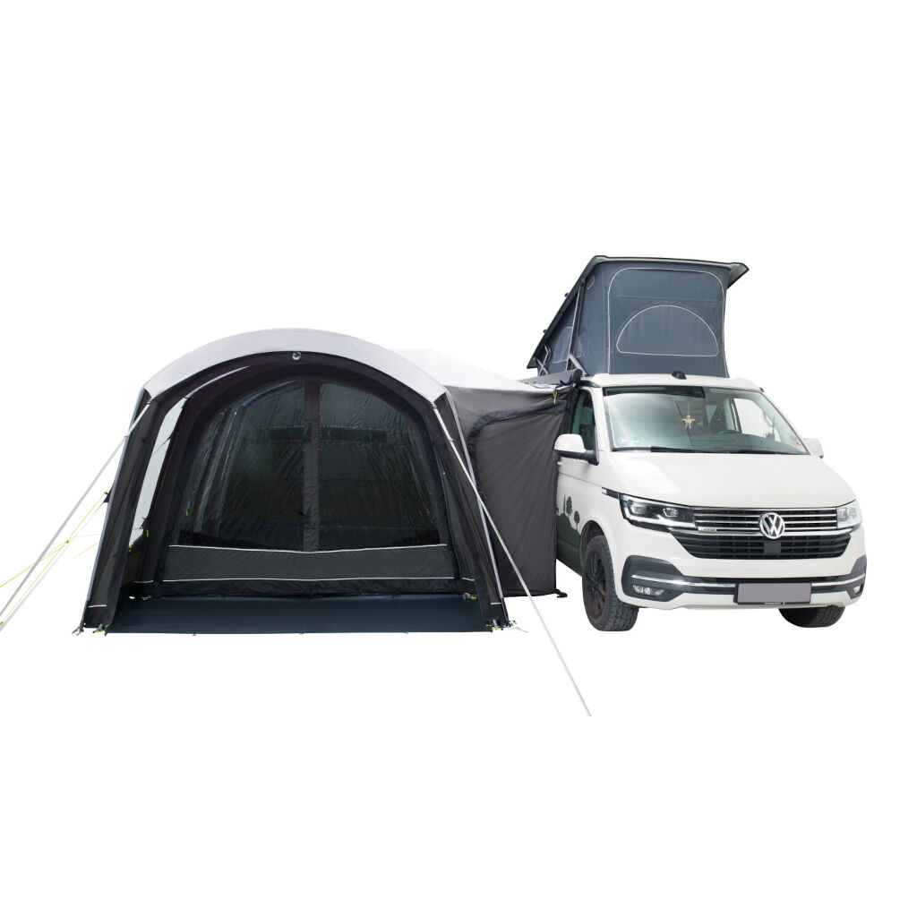 Slusen har en stor dør, så teltet kan åbnes op mod bilen. Hvis du vil tage afsted med bilen og lade teltet stå, skal du blot lukke dørene og løsne slusen fra bilen. En smart funktion er, at teltet også kan bruges uden sluse.