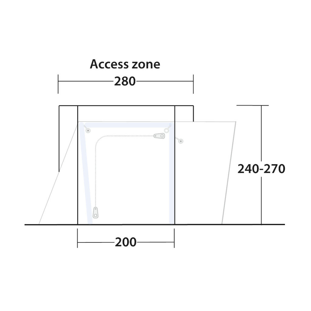 Forbind højere køretøjer som Sprinter og Ducato med busteltet Outwell Jonesville 290 eller 440SA. Giver en regntæt overgang mellem køretøj og telt og øger tilslutningshøjden til 240 - 270 cm.
