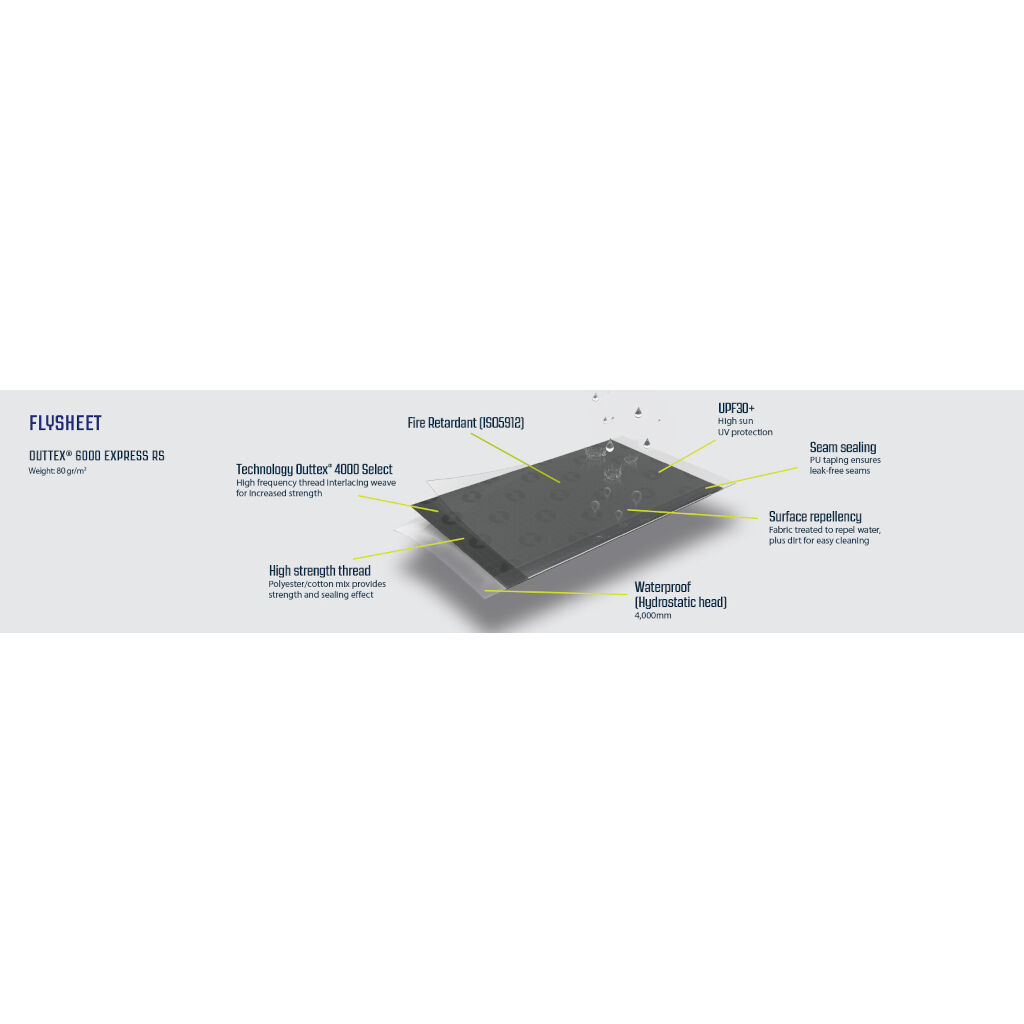 - Holdbart teltstof med ripstop: Outtex® 6000 Express RS polyester