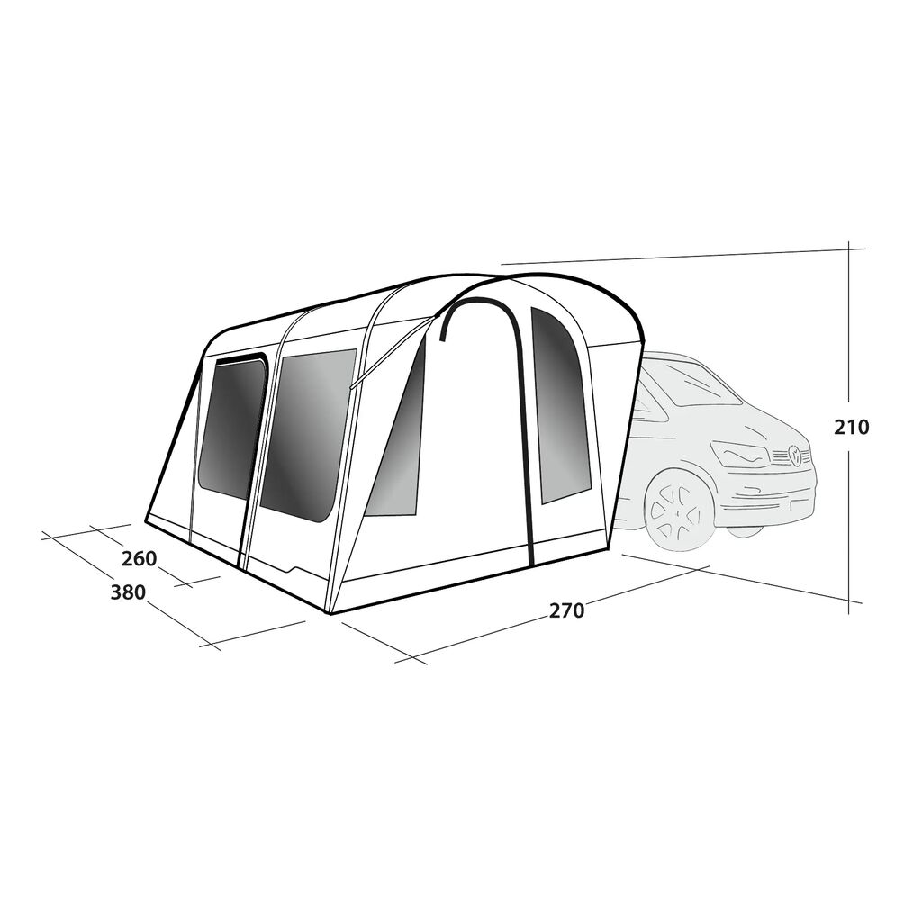 Wolburg Air bustelt er designet til familier og campister, der søger et rummeligt opholdsrum, som integreres sømløst med autocamperen. Det fastgøres nemt parallelt med din autocamper for optimal udnyttelse af små campingpladser. Du får fleksible opsætningsmuligheder, da det kan tilpasses dine behov og campingpladsens forhold.