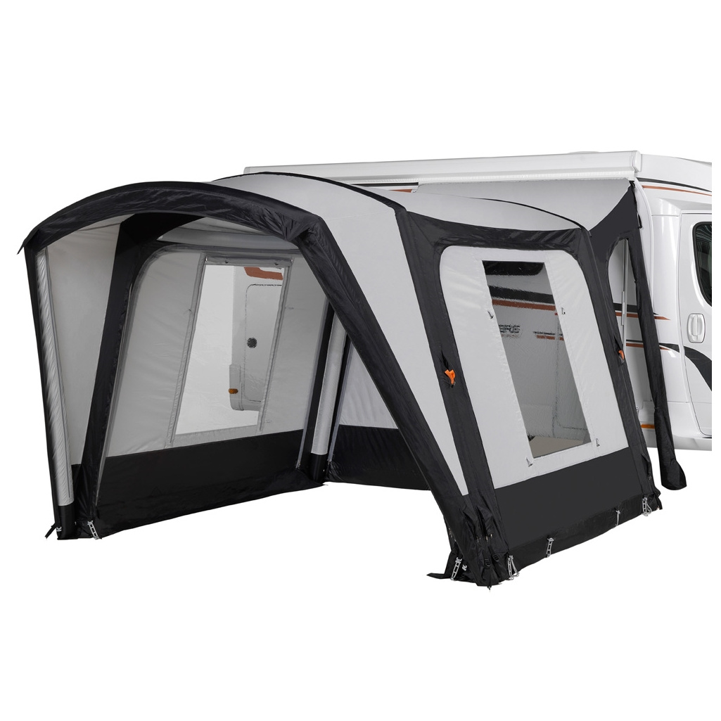 Meget hurtigtmonteret universaltelt til autocampere, der nemt kan monteres på 5 minutter. Dorema Disovery Air er meget alsidig og fastgøres til autocamperens fortelt ved hjælp af en strimmel, der passer til de fleste autocampere med en tilslutningshøjde fra 210 cm op til 270 cm. Da teltet er fritstående, kan det også afbrydes fra autocamperen og efterlades på campingpladsen.