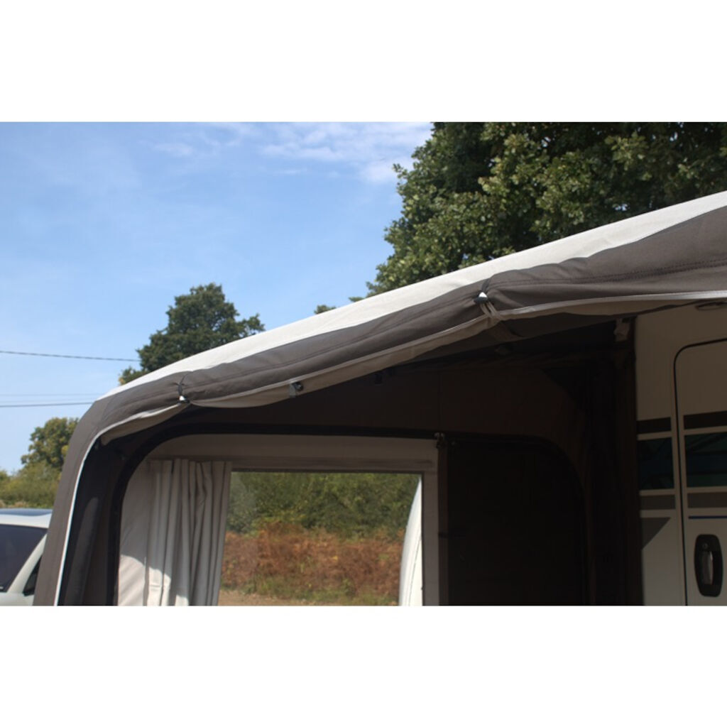 Tenta Pure 260 har to keder-lister på 5 og 7 mm, så den passer til både campingvogne og mobilhomes. Dobbelt lynlås op ad siderne gør det meget nemt at justere højden ved at åbne den ene eller begge lynlåse.