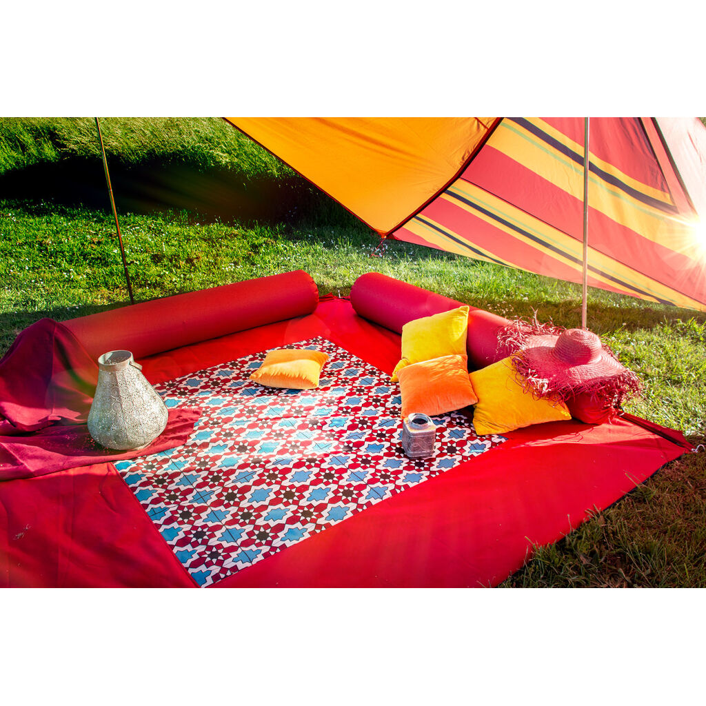 Forvandl rummet under markisen til en udendørs stue med dette smukke og flotte forteltetæppe fra Bent.