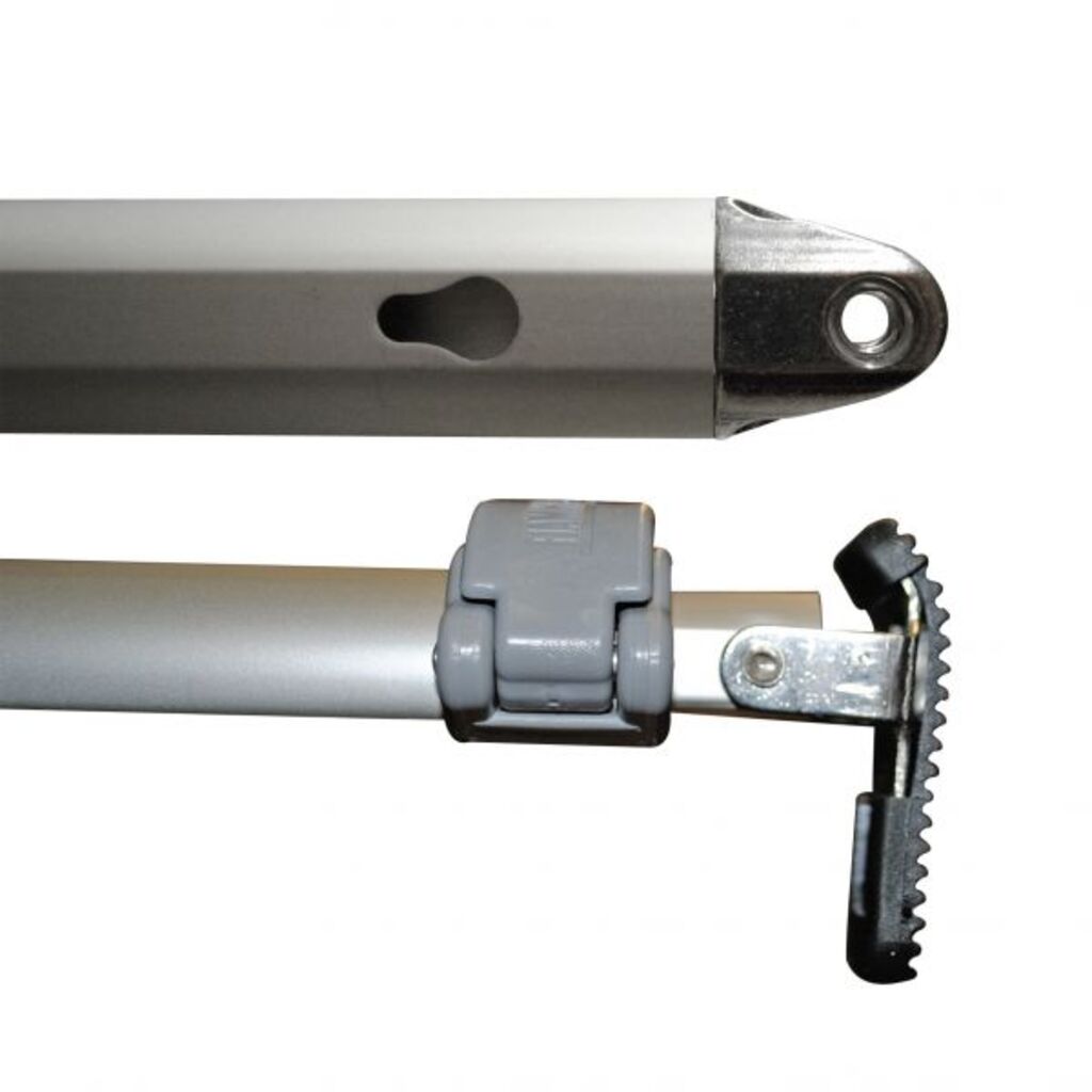 Støtteben med beslag til Fiamma Caravanstore, passer til modellerne Caravanstore XL 280 og 310 cm (ikke andre længder), Caravanstore XL ZIP 280 og 310 cm (ikke andre længder), Caravanstore 013/014 på 280 cm (ikke andre længder) samt Caravanstore 05 og 07 i længder mellem 280 og 400 cm.