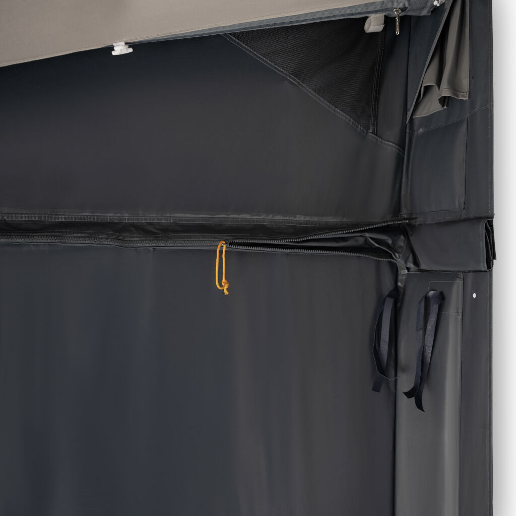- Slidstærk teltdug (400 g/m²) i Weathershield PVC – velegnet til vinterbrug, vandtæt og let at rengøre