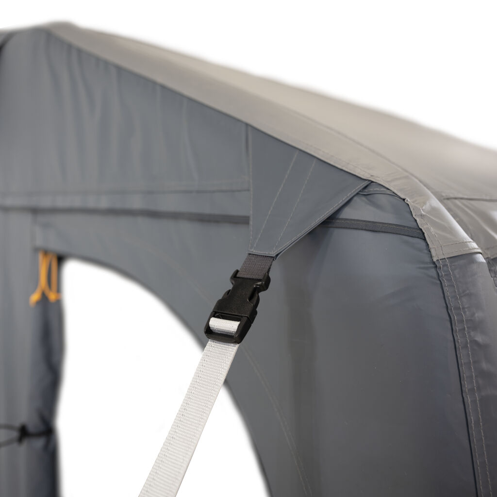 Kom hurtigt på plads med dette slidstærke, oppustelige vinterfortelt. Perfekt til skiferien eller turen i fjeldene. Et kraftigt teltstof, ekstra stærke luftkanaler, ekstra tagstøtter, dobbelt læskørt, stormremme og ekstra støtteben mod campingvognen giver et telt, der kan klare selv det hårdeste vintervejr. Passer til både campingvogne og autocampere med en højde mellem 265 og 295 cm.