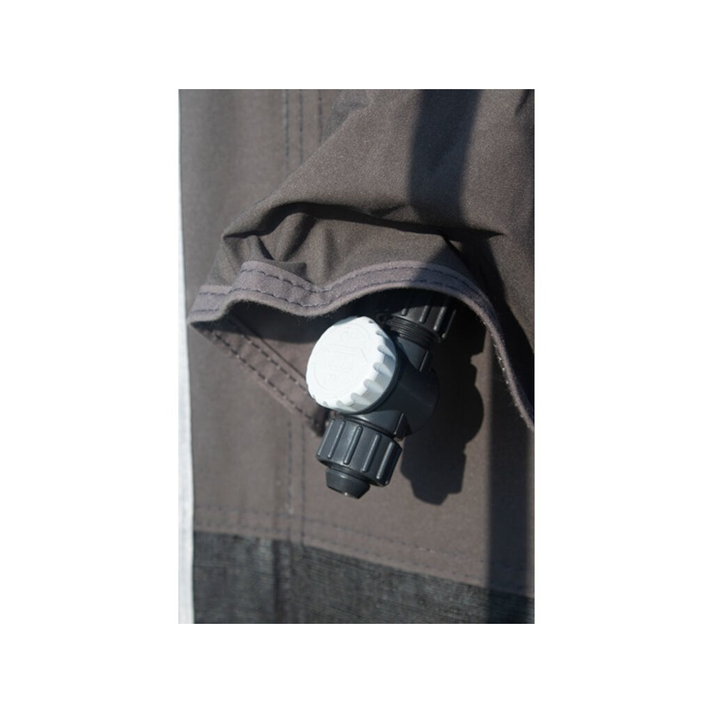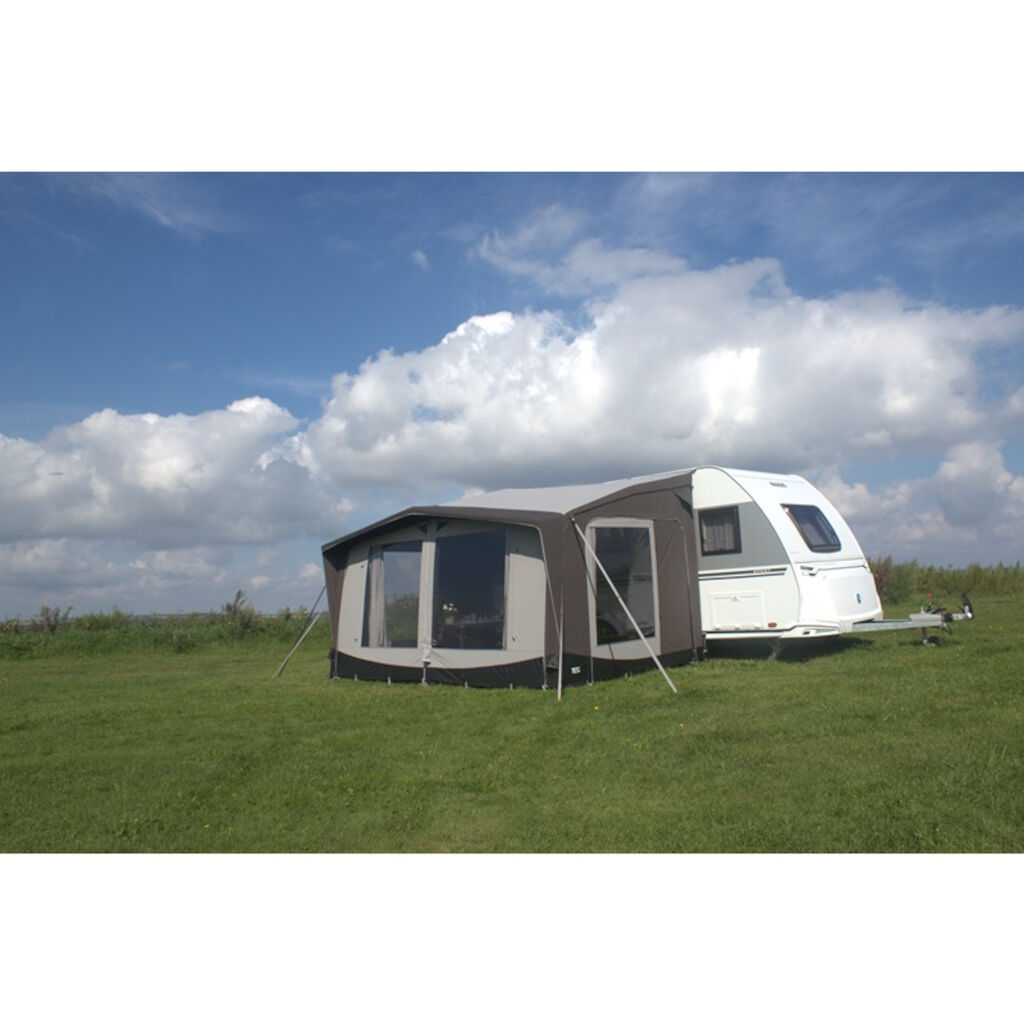 Telta Life 390 har to kederlister (5 og 7 mm), så det passer både til campingvogne og autocampere. Dobbelt lynlås i siderne gør højdejusteringen nem.