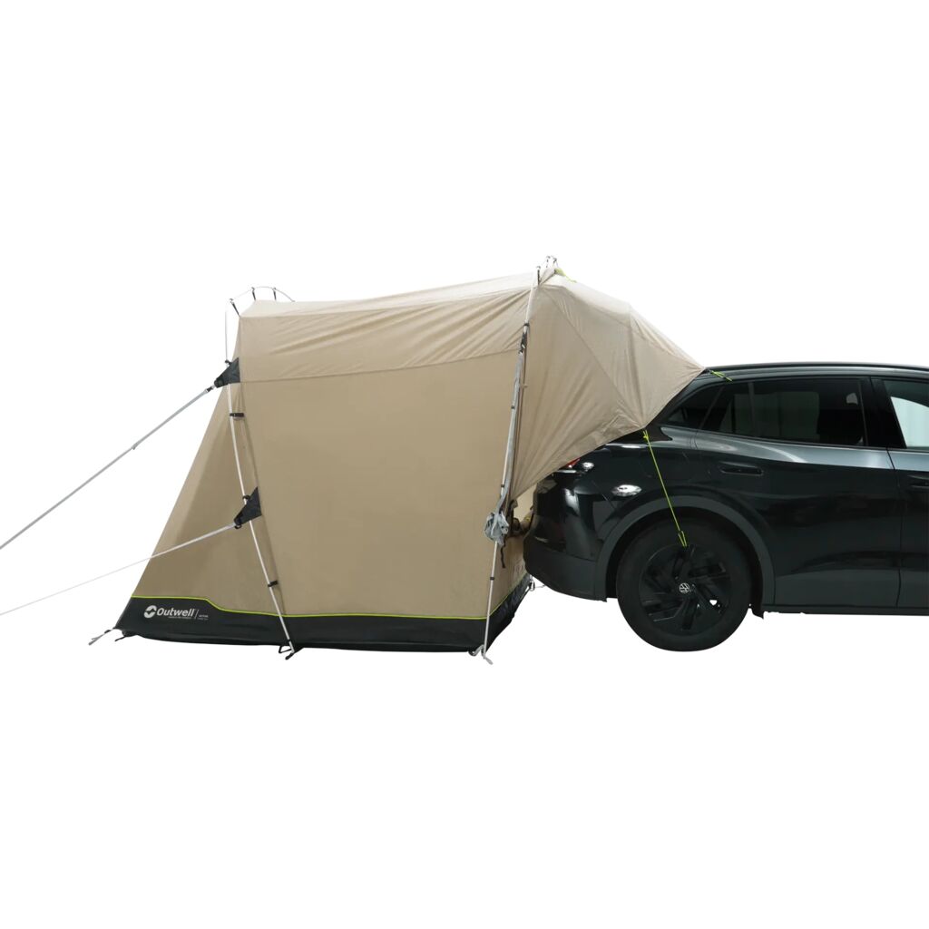 Giv bilen ekstra plads til udstyr, madlavning eller afslapning. Outwell Dune SUV er et let, slidstærkt og hurtigt opslået biltelt, der fastgøres til bilens bagklap. En fleksibel fastgørelse gør, at det passer til de fleste biler med en højde mellem 155 og 185 cm. Teltet fastgøres til bilens bagdøre, omkring baghjulene og med justerbare pløkfæster i jorden. Fronten kan åbnes helt og spændes op som soltag. Store myggenetsvinduer med vandtætte gardiner gør det nemt at ventilere eller lukke lys ind. Teltet er helt fritstående og kan kobles fra, hvis du skal køre væk med bilen. Det har da en ekstra bagdør, som kan lukkes for at beskytte udstyr, der efterlades i teltet.