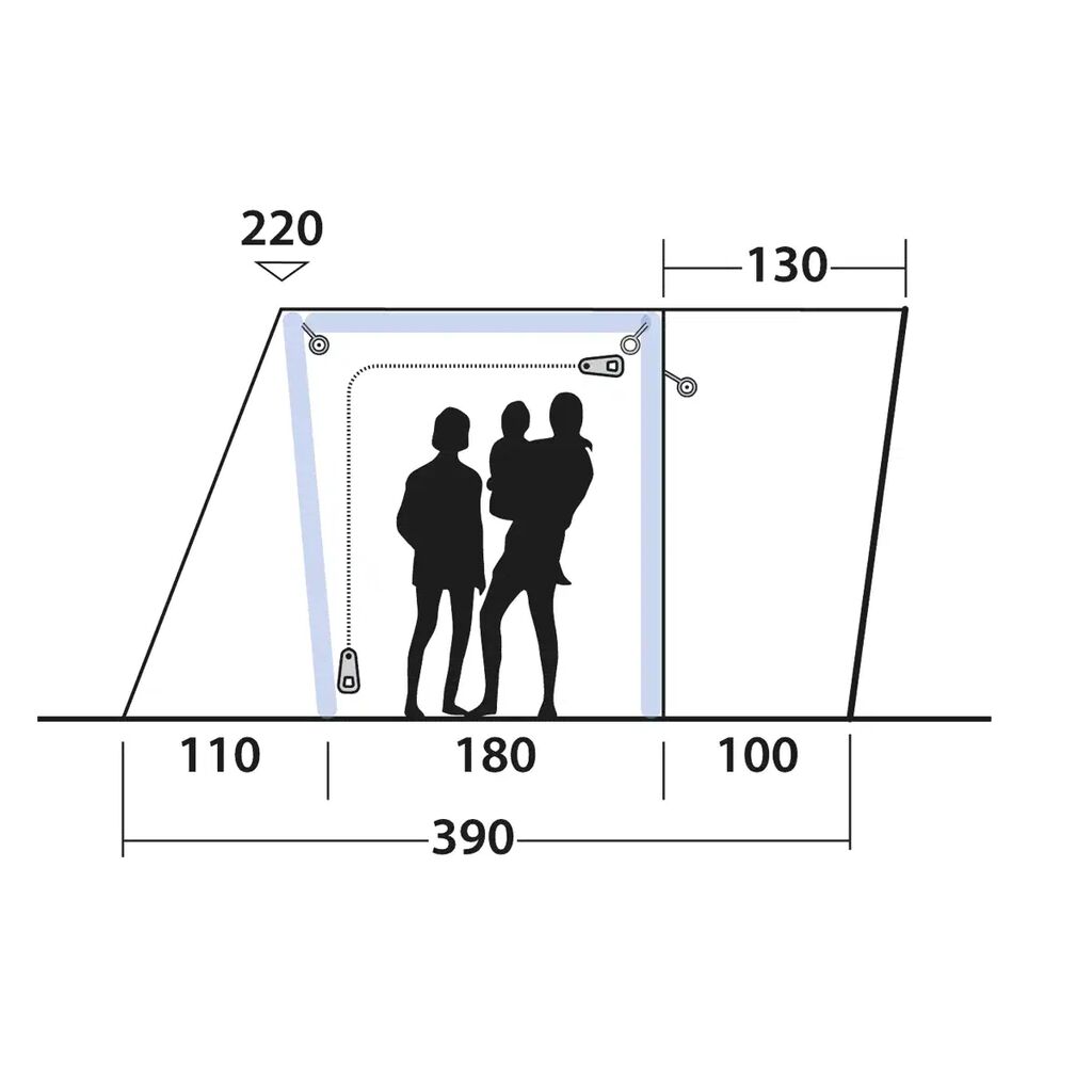 - Slusen kan fjernes, så teltet fungerer som almindeligt telt