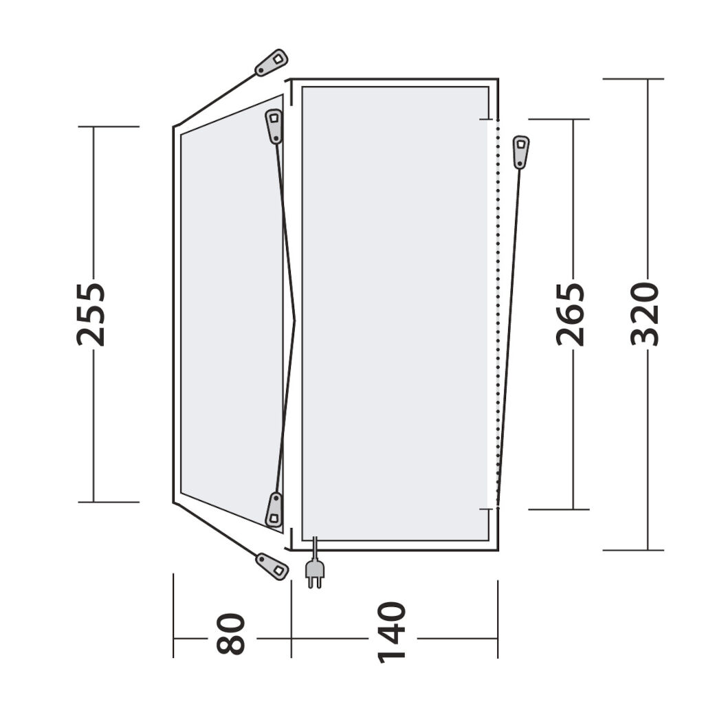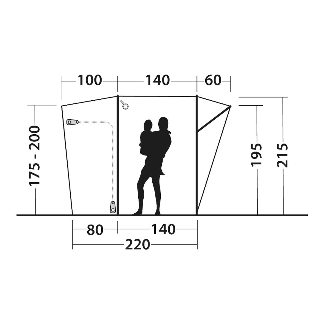 - Slussen mod bilen - lukkes, hvis du vil forlade teltet og køre væk med bilen
