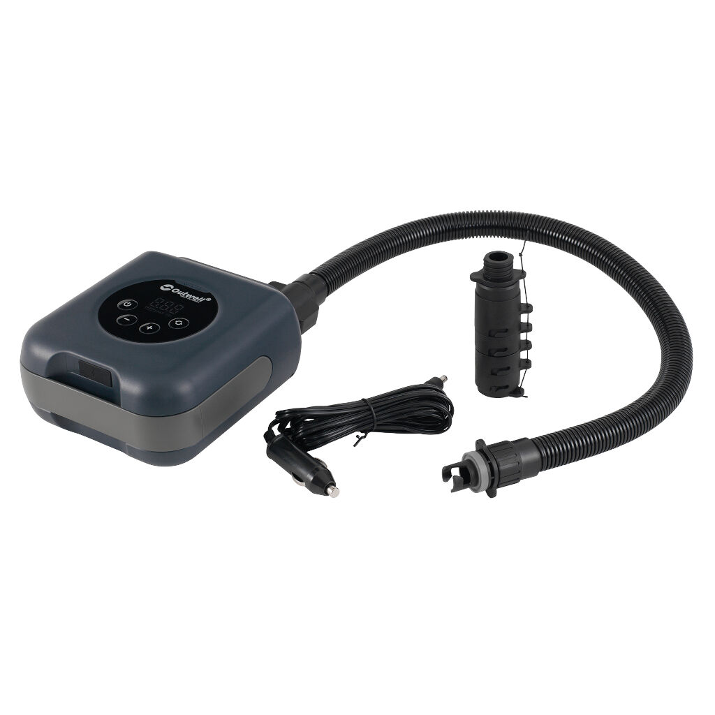 | Inkluderet i pakken | Pumpe, 7 ventiladaptere, Outwell FHF pumpeadapter, bæretaske, 12V-kabel & USB-C kabel |