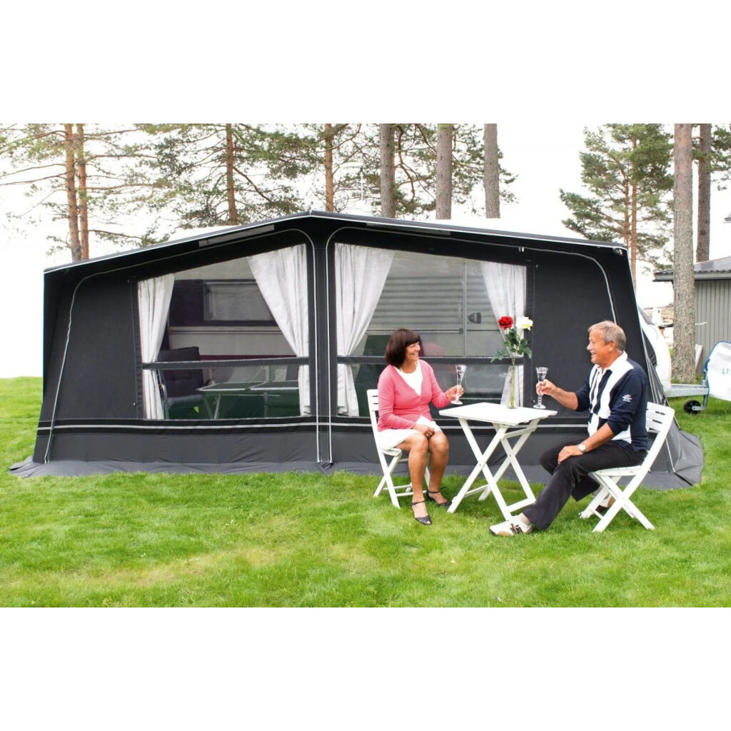 | Inkluderet i pakken | Svenska Tält Diplomat, telttaske, stativtaske, gardiner, bunddække, hjulhusafdækning og verandastang |