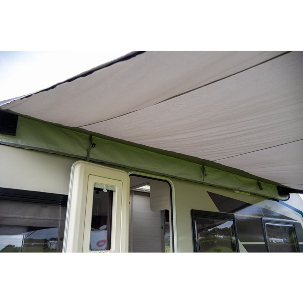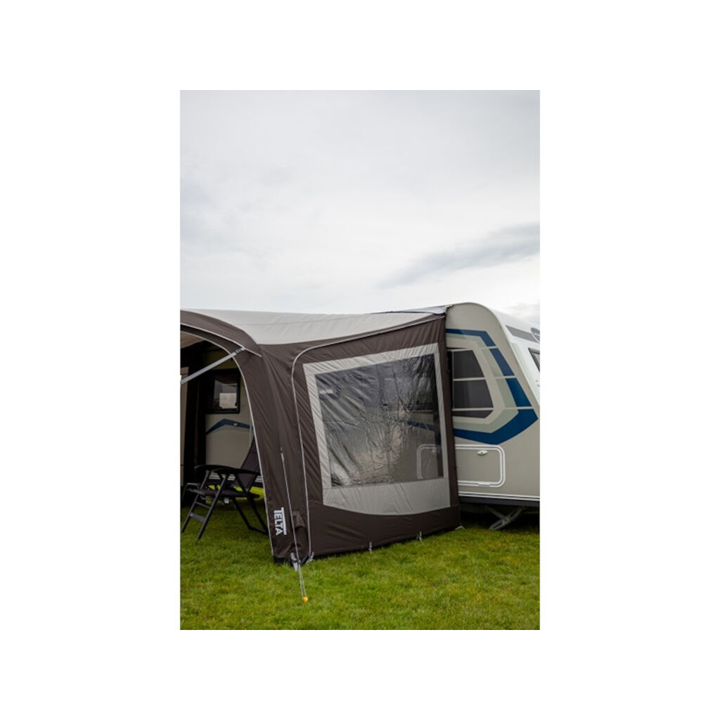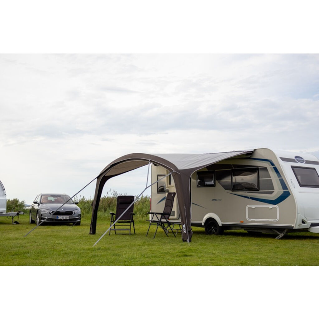 Sky Link fra Telta er en posemarkise til campingvogne, med indbyggede luftkanaler som gør den hurtig og nem at sætte op. Taget kan rulles sammen og blive siddende på campingvognen under transport, hvilket sparer tid ved kortere stop. Hvis I senere ønsker at skifte til et fortelt, er det nemt at tage af og pakke i bilen eller campingvognen. Nyd solbeskyttelse foran campingvognen og supplér med sidevægge og frontpanel for ekstra beskyttelse mod vind og regn. Solsejlet fås i to bredder: 330 og 400 cm.