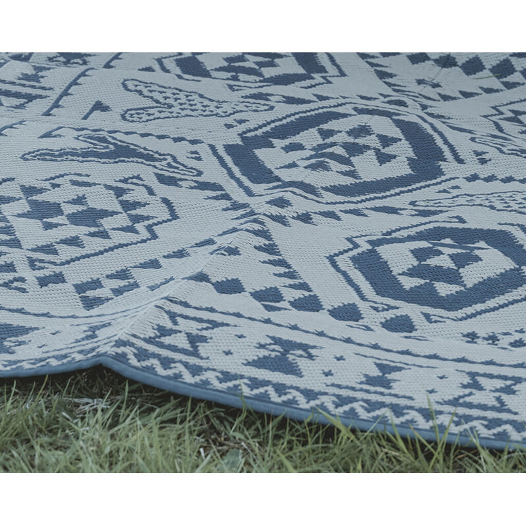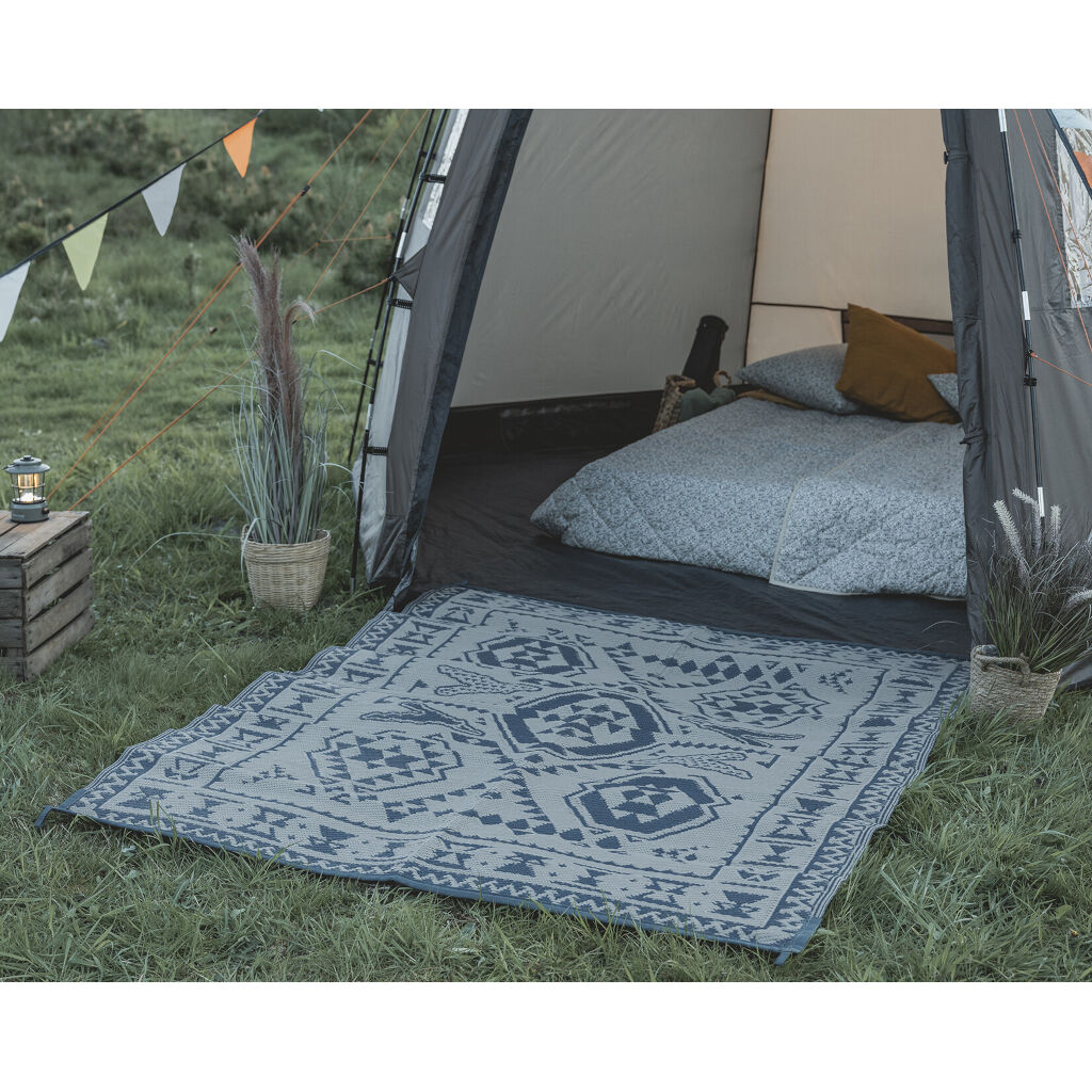 Mønstret tæppe i slidstærkt materiale, der er let at rengøre og giver en hyggelig følelse i teltet eller på terrassen.