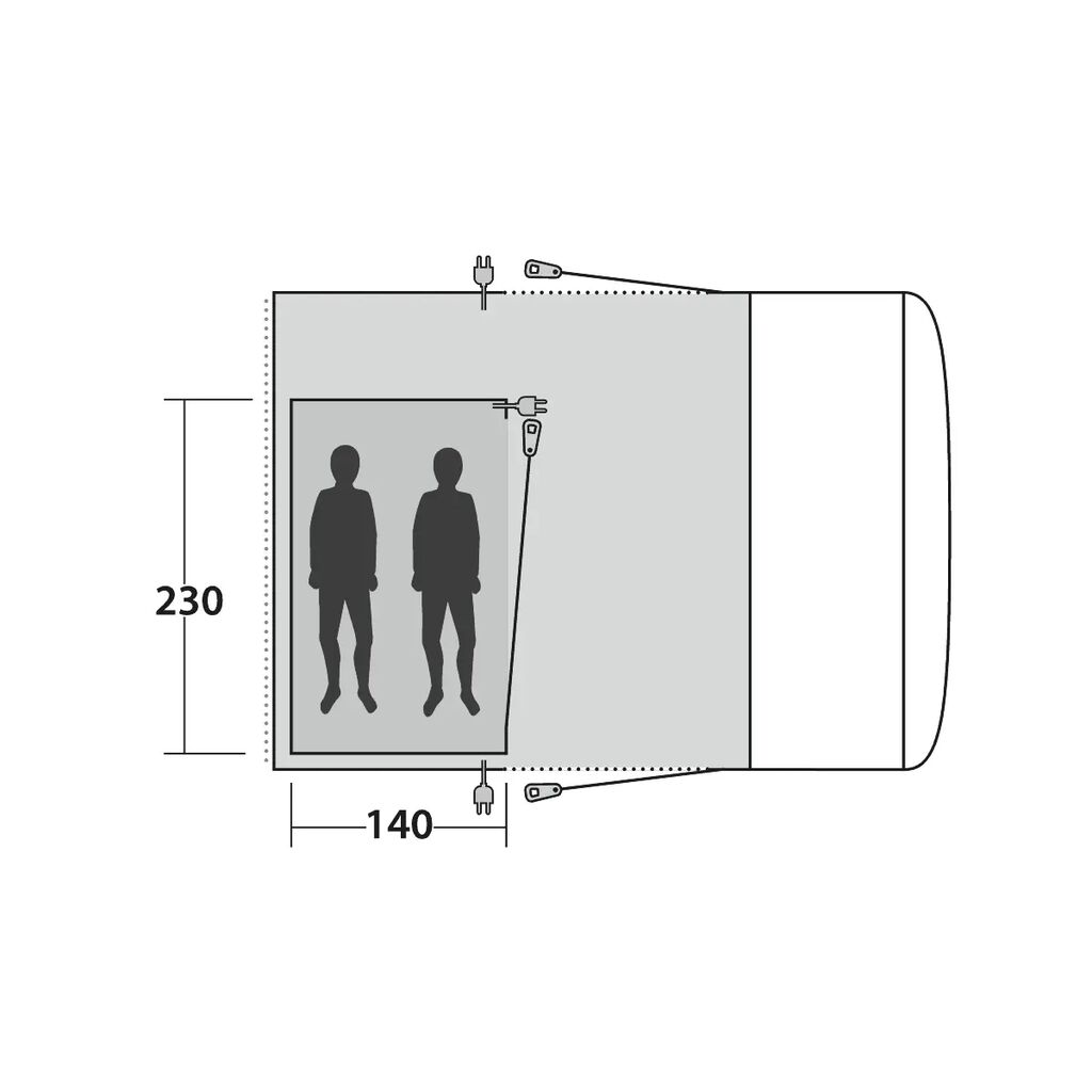 Indertelt fra Outwell, der passer til Talladega, Wolfburg Air, Wolfburg 380A og Jonesville 290SA. Med mørke vægge og loft reduceres lysindfaldet og giver en god nats søvn. Opbevaringslommer på indersiden af sovekabinen hjælper dig med at holde styr på dine ting.