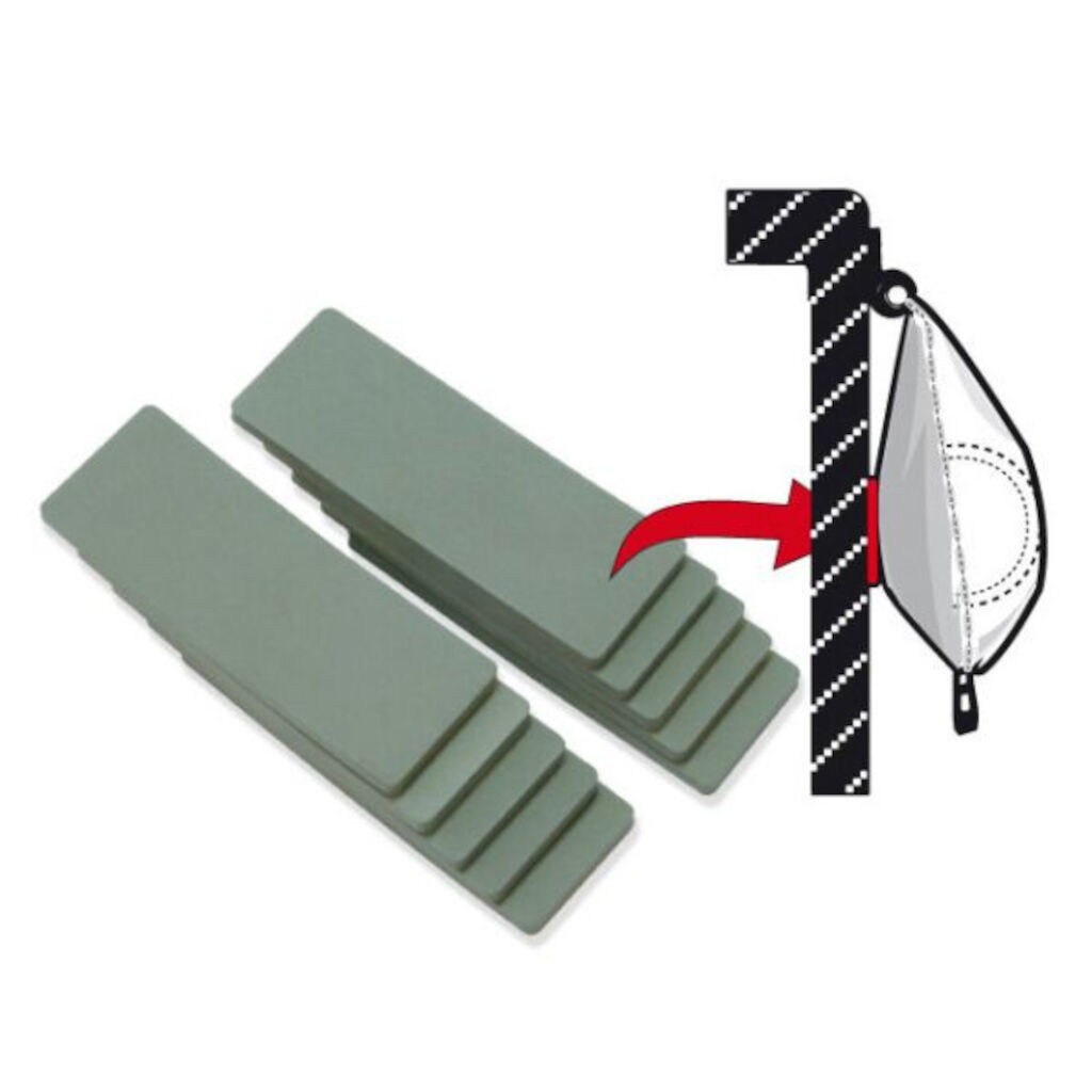 Slidbeskyttelse til posemarkisen, som fastgøres mellem pose og væg, hvor arm eller overligger går ind på campingvognen.