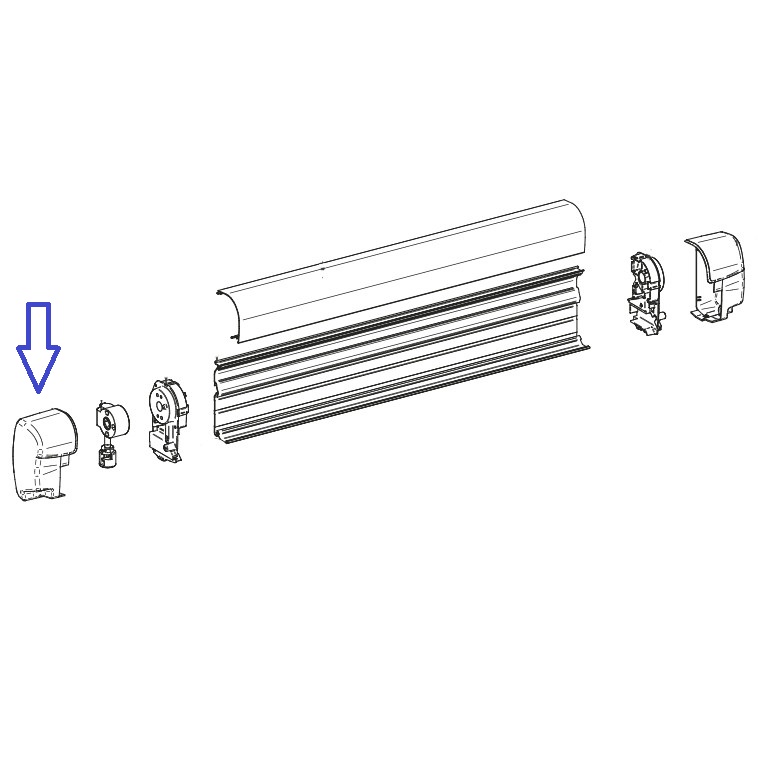 Venstre endekappe til Thule Omnistor 8000 markisen med motor. Forskellen fra den almindelige dækkappe er, at der medfølger et dæksel til vejehullet.