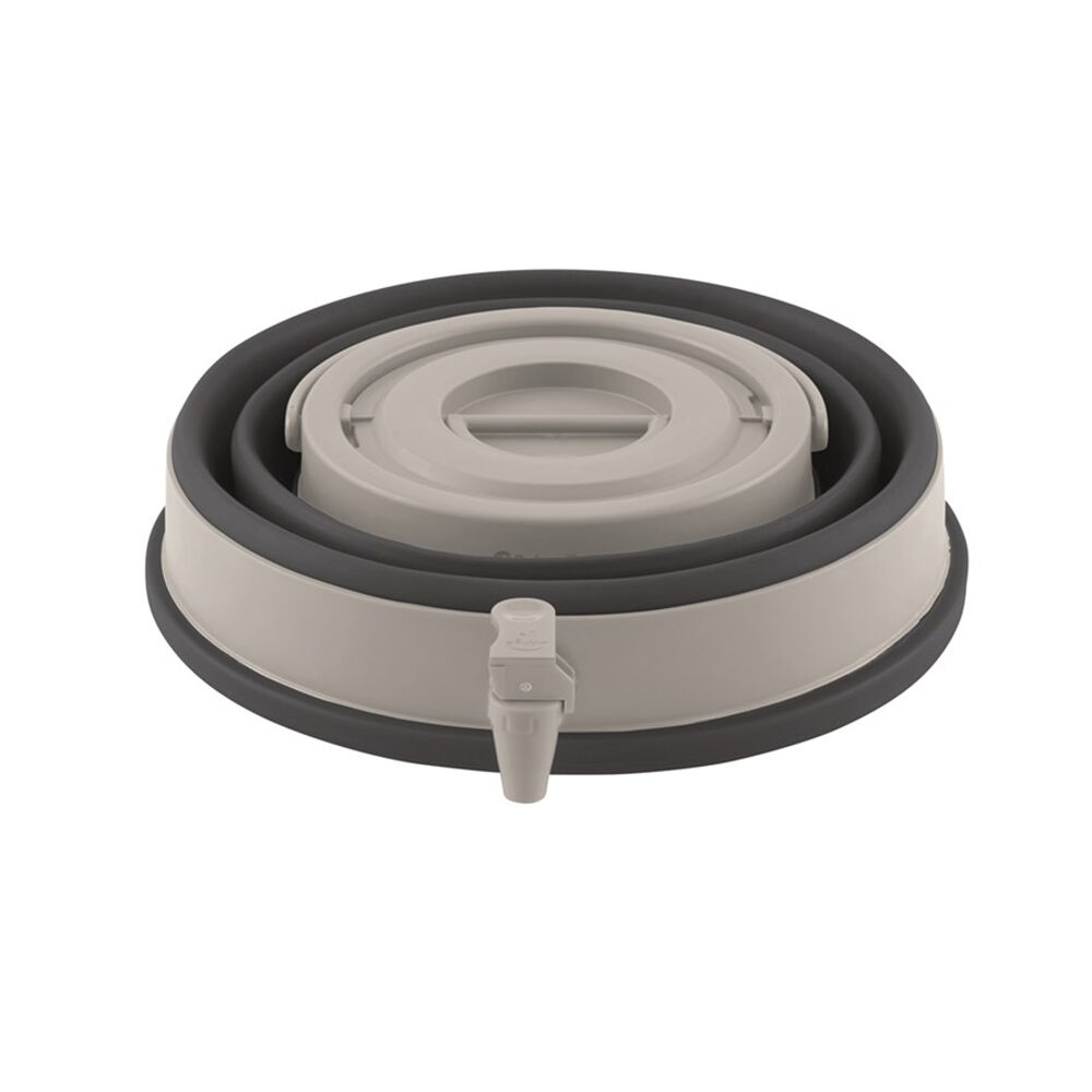 Smart sammenklappelig vandtank med håndtag og hane. Konstruktion af TPE og plast, der er nem at rengøre og samtidig giver stabilitet, så beholderen ikke foldes ufrivilligt sammen. At den er sammenklappelig giver en meget lille pakkestørrelse.
