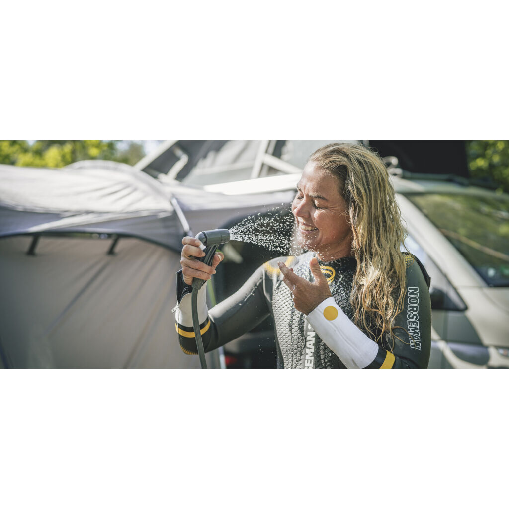 Ingen bruser i nærheden? Uanset om du skal skylle fødderne efter stranden, skylle våddragten eller vaske hunden – denne bruser klarer det. Det indbyggede PVC-termometer sikrer den perfekte temperatur hver gang.