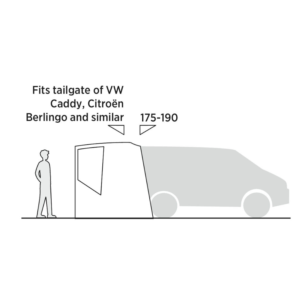 Easy Camp Krossbu Mini er et biltelt, der monteres på bagenden af bilen og giver ekstra overdækket plads til madlavning, opbevaring eller afslapning. Designet til mindre køretøjer som Peugeot Rifter, Citroën Berlingo og VW Caddy. Nem opsætning med barduner og mulighed for at bruge døren som solsejl med de medfølgende stænger.