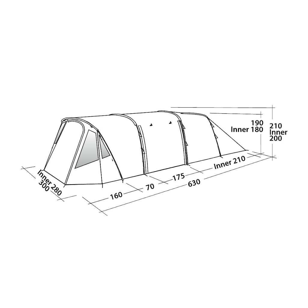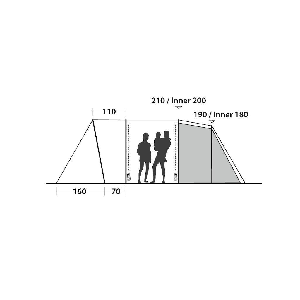 En større version af vores bestseller blandt 5-personers familietelte. Fastsyet bund, et opholdsrum med store vinduer, to sovekabiner samt et ekstra rum foran. Det ekstra rum er perfekt som et beskyttet udeområde, hvis man åbner indgangen foran eller opbevarer cykler, barnevogne eller andet udstyr.