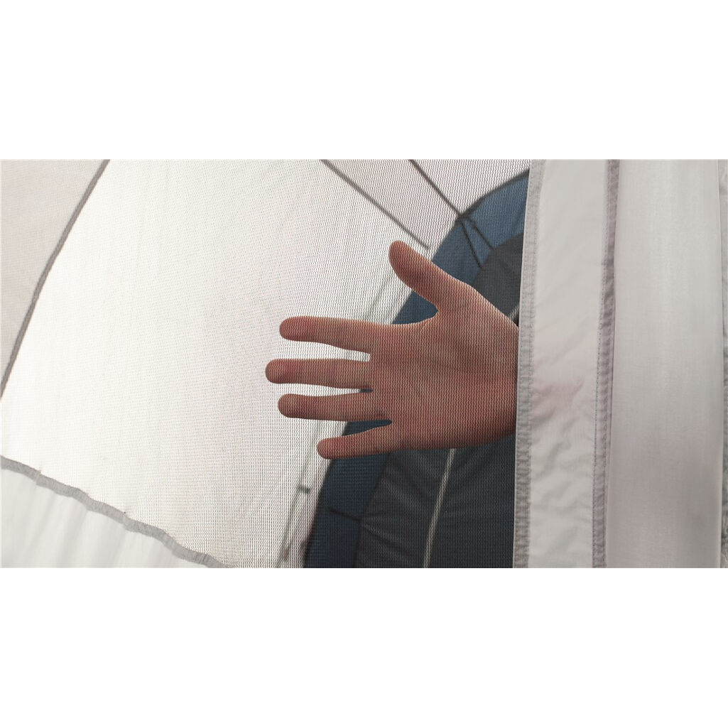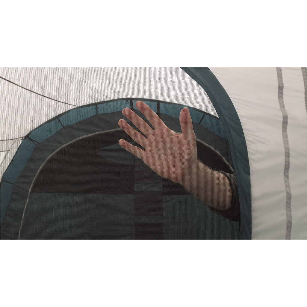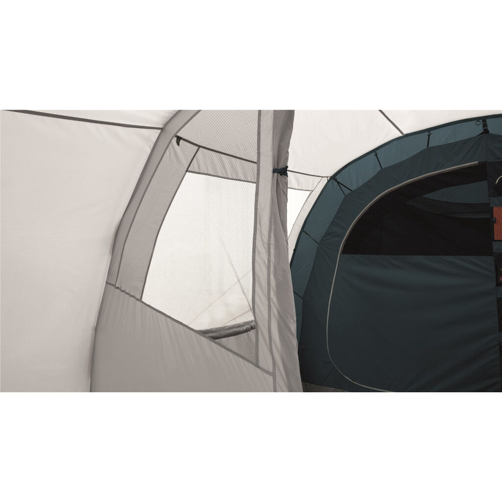 Familieteltets ventilation er betragteligt øget med en stor justerbar ventil bag sovekabinen. Sideåbningen med et indbygget myggenet kan bruges til at øge luftgennemstrømningen i teltet på varmere dage. Indgangen kan også fastgøres helt åben for at skabe ekstra luftstrøm. Teltstoffet er helt vandtæt med tapede sømme og er brandhæmmende. Stængerne er lavet af glasfiber og er farvemarkeret i forhold til stangkanalerne for nem opsætning.