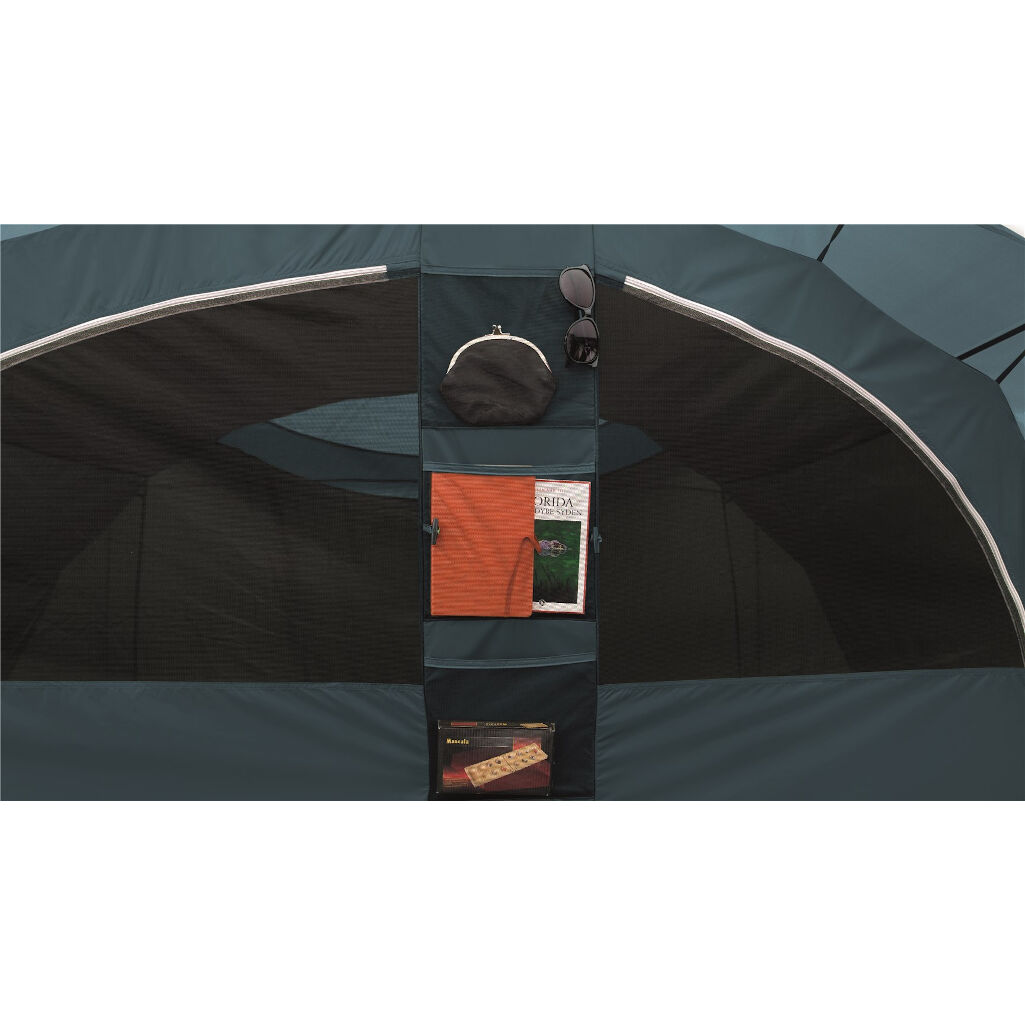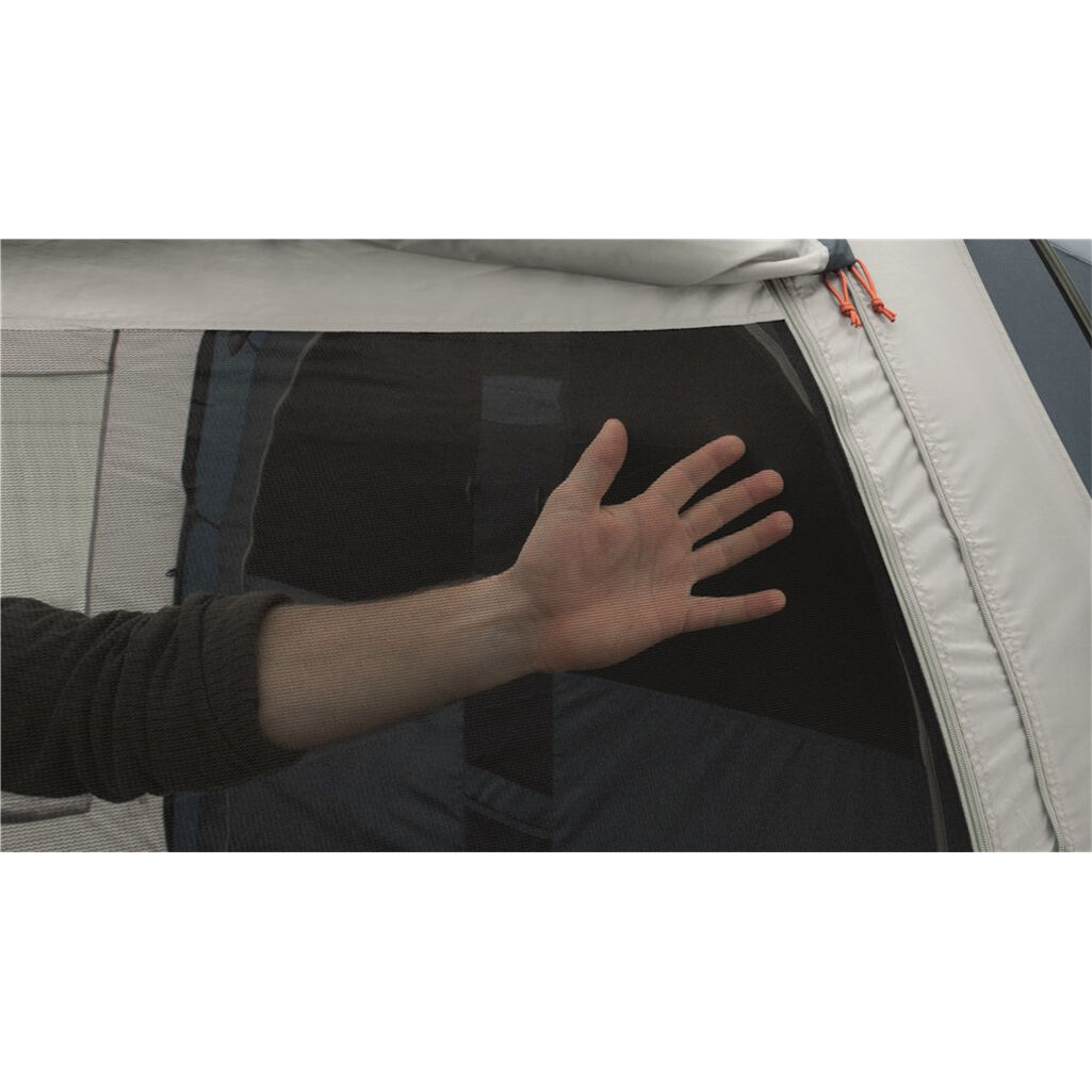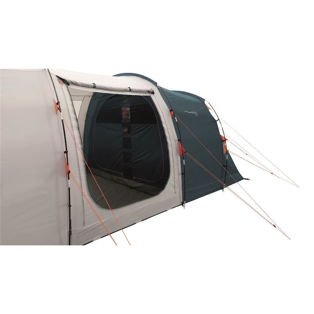 Familieteltets ventilation er betragteligt øget med en stor justerbar ventil bag sovekabinen. Sideåbningen med et indbygget myggenet kan bruges til at øge luftgennemstrømningen i teltet på varmere dage. Indgangen kan også fastgøres helt åben for at skabe ekstra luftstrøm. Teltstoffet er helt vandtæt med tapede sømme og er brandhæmmende. Stængerne er lavet af glasfiber og er farvemarkeret i forhold til stangkanalerne for nem opsætning.