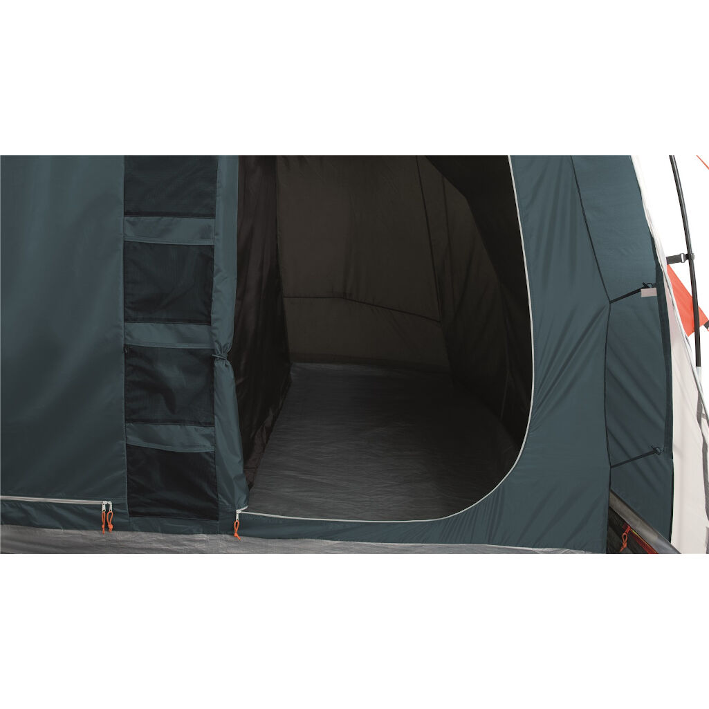 Med to sovekabiner, et opholdsrum med store vinduer og et ekstra område foran, er der plads til både socialt samvær og udstyr i Easy Camp Palmdale 500 Lux. Det ekstra område foran kan også bruges som et beskyttet udeområde ved at åbne indgangen helt. En stor fordel ved teltet er, at den primære del har en påsyet bund, hvilket giver et bedre klima i teltet med mindre træk, færre insekter og mindre kondens. Det ekstra område foran kan også bruges til at opbevare sko, barnevogne eller ekstra udstyr såsom cykler.