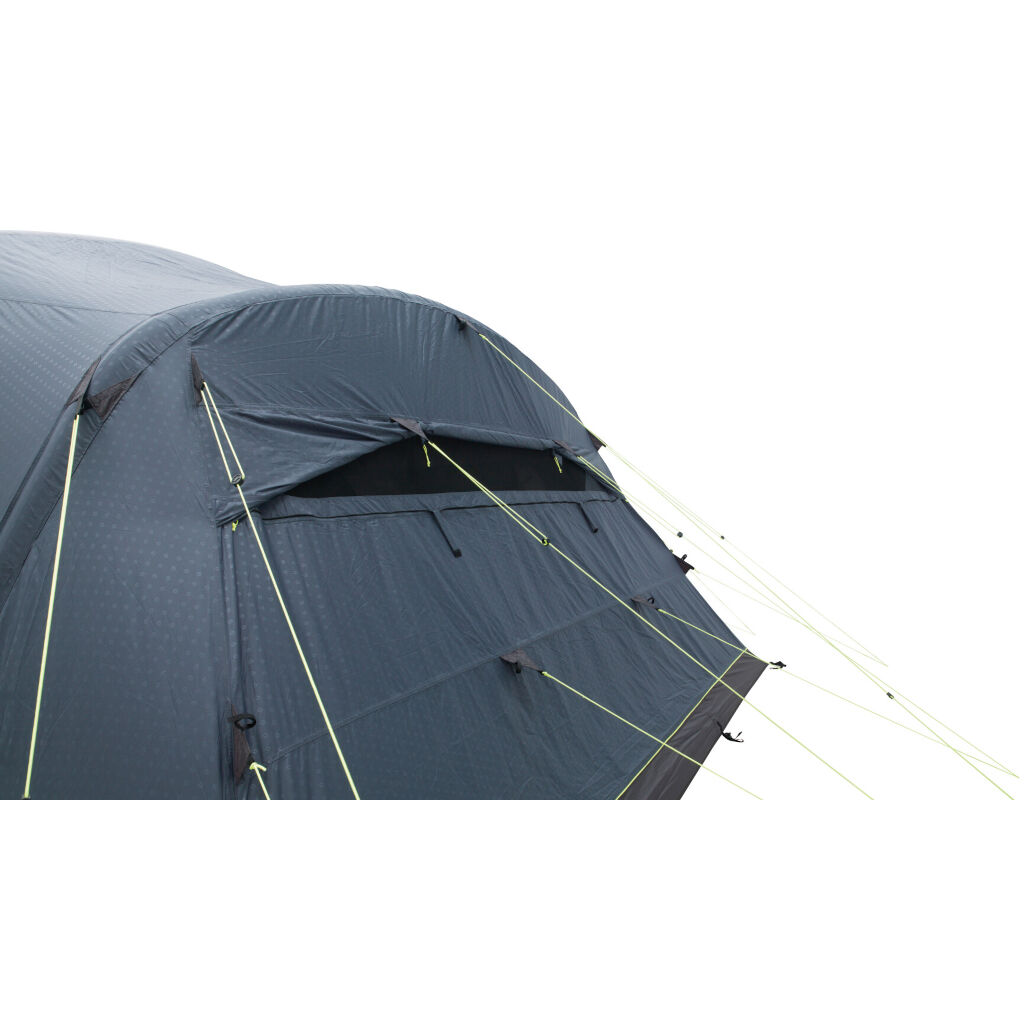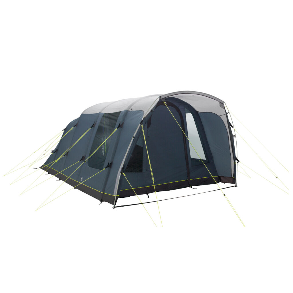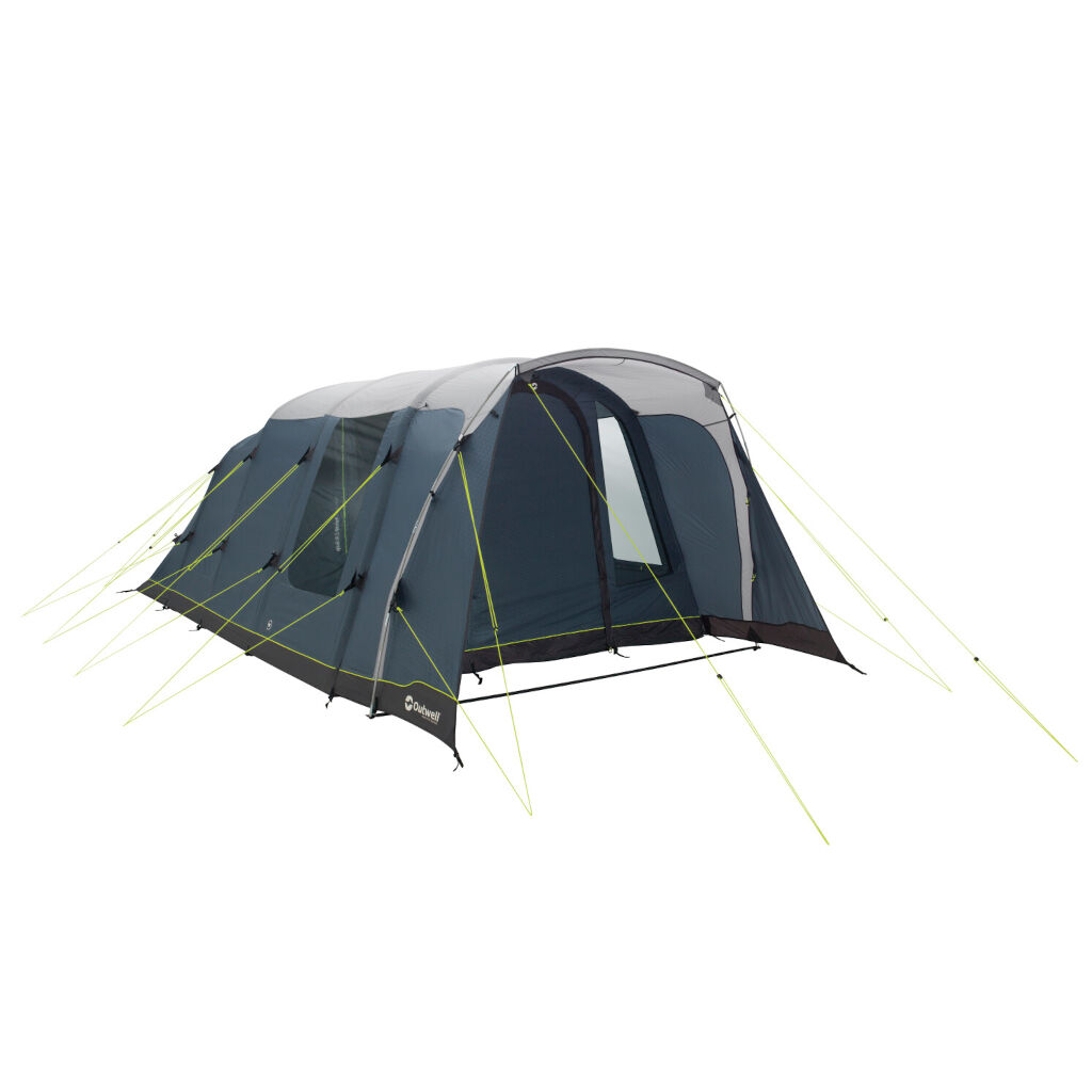 Hurtigopstillet og rummeligt 5-personers familietelt fra Outwell, der bruger luftkanaler i stedet for traditionelle stænger. En sovekabine med lavere lysindfald, der kan opdeles i to soverum, giver god sovekomfort. Opholdsrummet har plads til at indrette sig med borde, stole og opbevaringsmøbler uden at blive trangt, og teltet har også et helt fastsyet bund, som beskytter mod træk, småinsekter samt kondens. Familieteltet har en mindre dør på siden og en stor beskyttet åbning foran, hvor det er praktisk at efterlade sko og udstyr, man ikke ønsker at tage med ind i teltet.