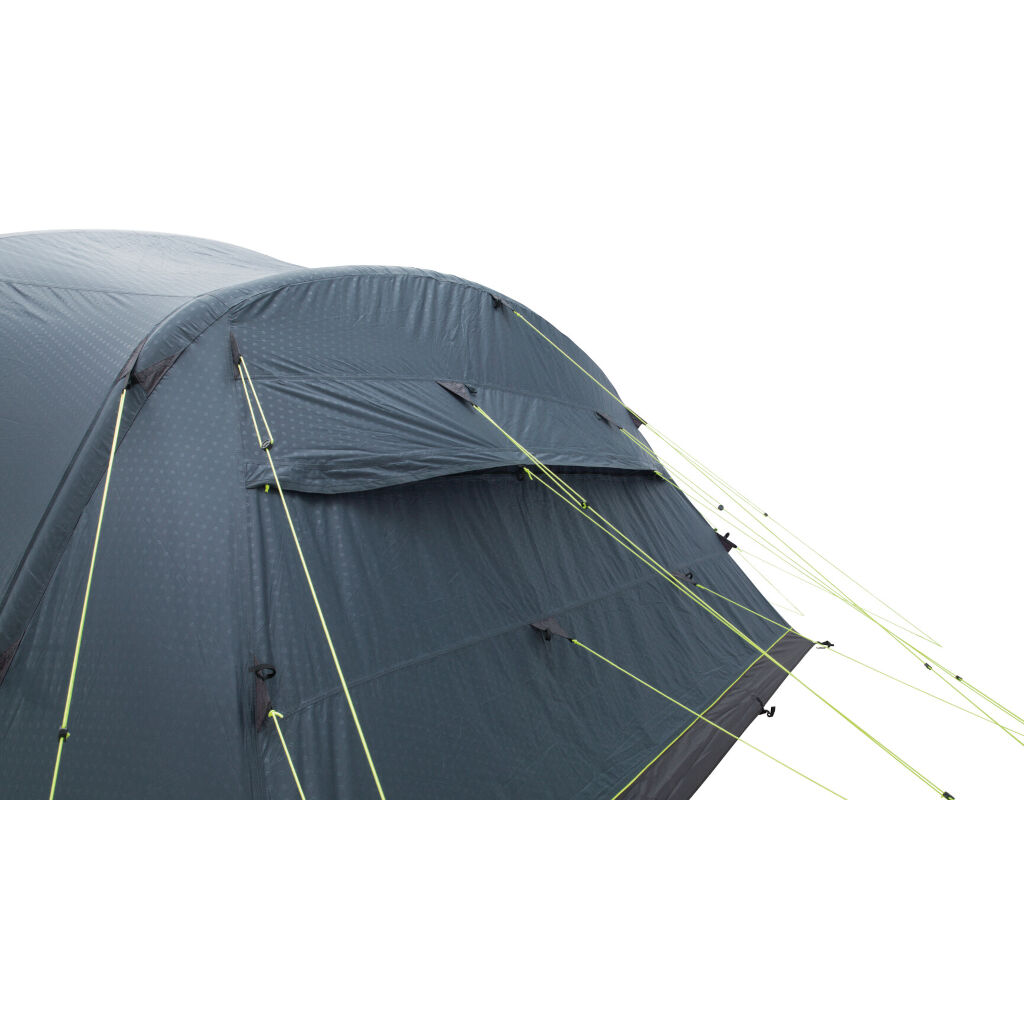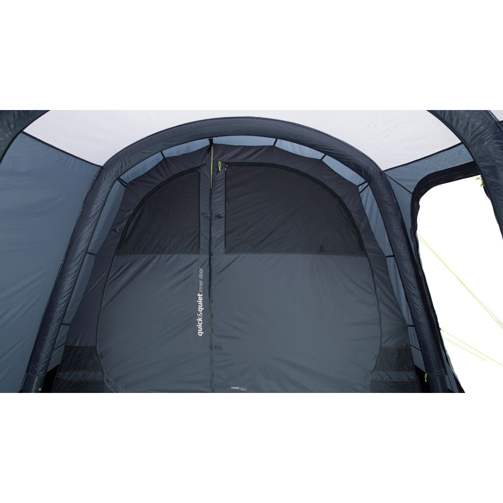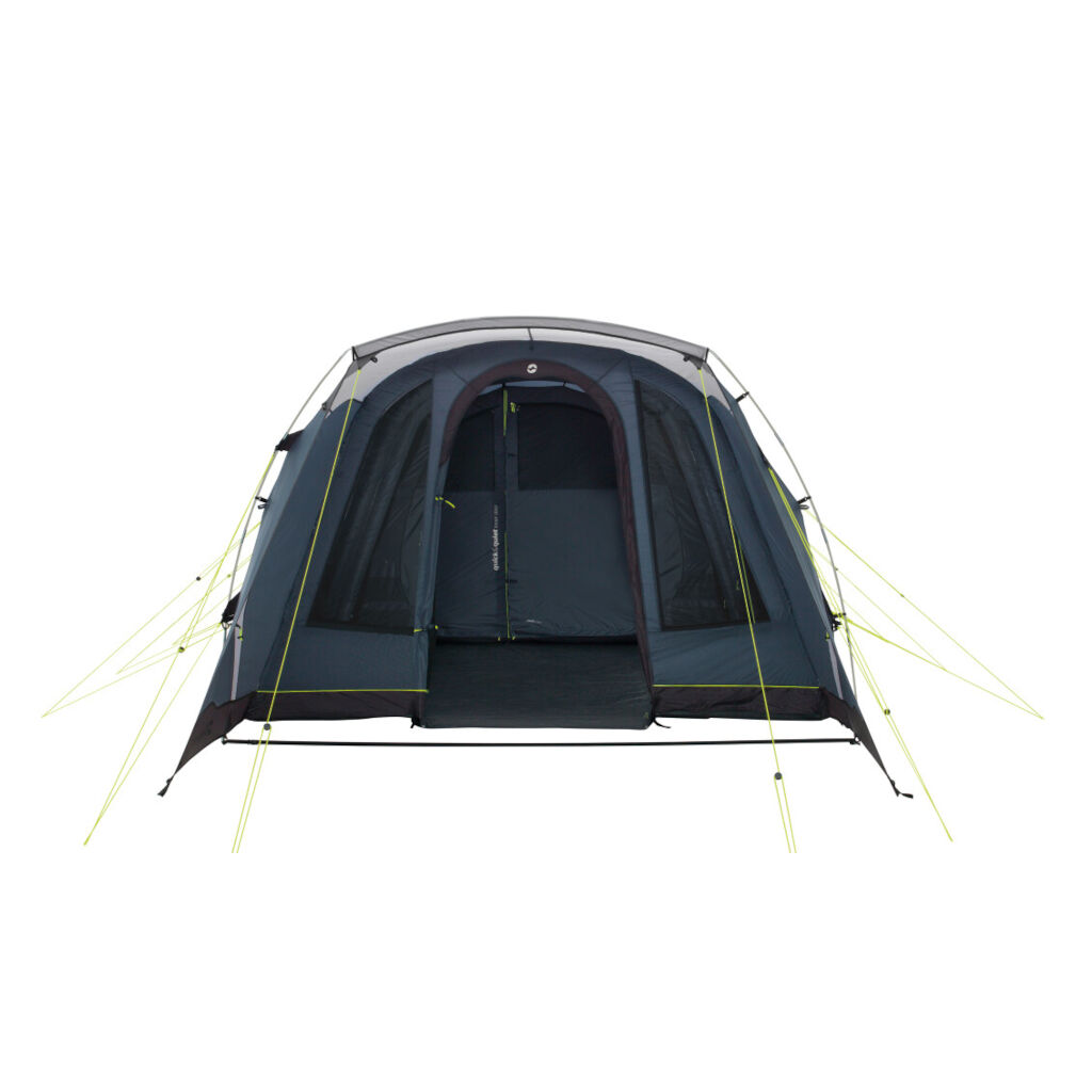 Hurtigopstillet og rummeligt 5-personers familietelt fra Outwell, der bruger luftkanaler i stedet for traditionelle stænger. En sovekabine med lavere lysindfald, der kan opdeles i to soverum, giver god sovekomfort. Opholdsrummet har plads til at indrette sig med borde, stole og opbevaringsmøbler uden at blive trangt, og teltet har også et helt fastsyet bund, som beskytter mod træk, småinsekter samt kondens. Familieteltet har en mindre dør på siden og en stor beskyttet åbning foran, hvor det er praktisk at efterlade sko og udstyr, man ikke ønsker at tage med ind i teltet.