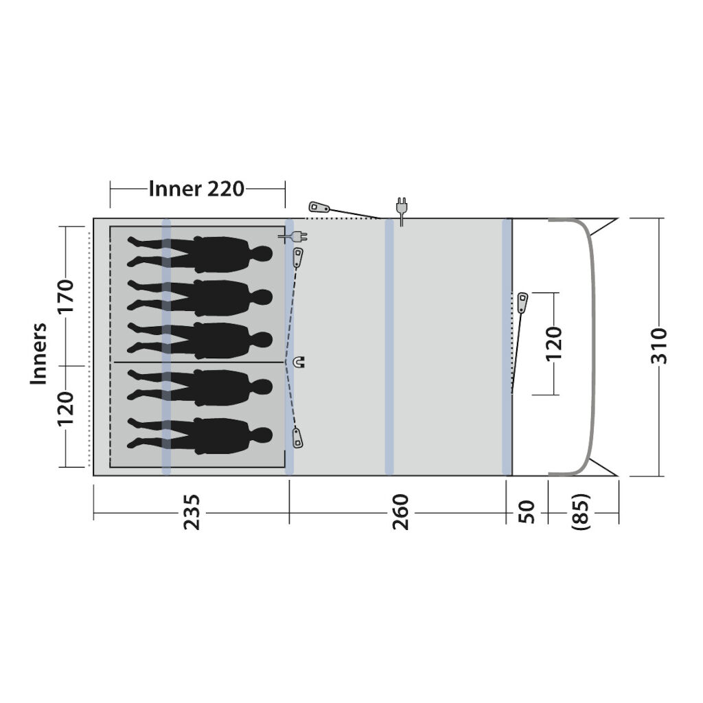 Teltbredde: 340 - 360 cmOutwell Universal Connector Air Shelter