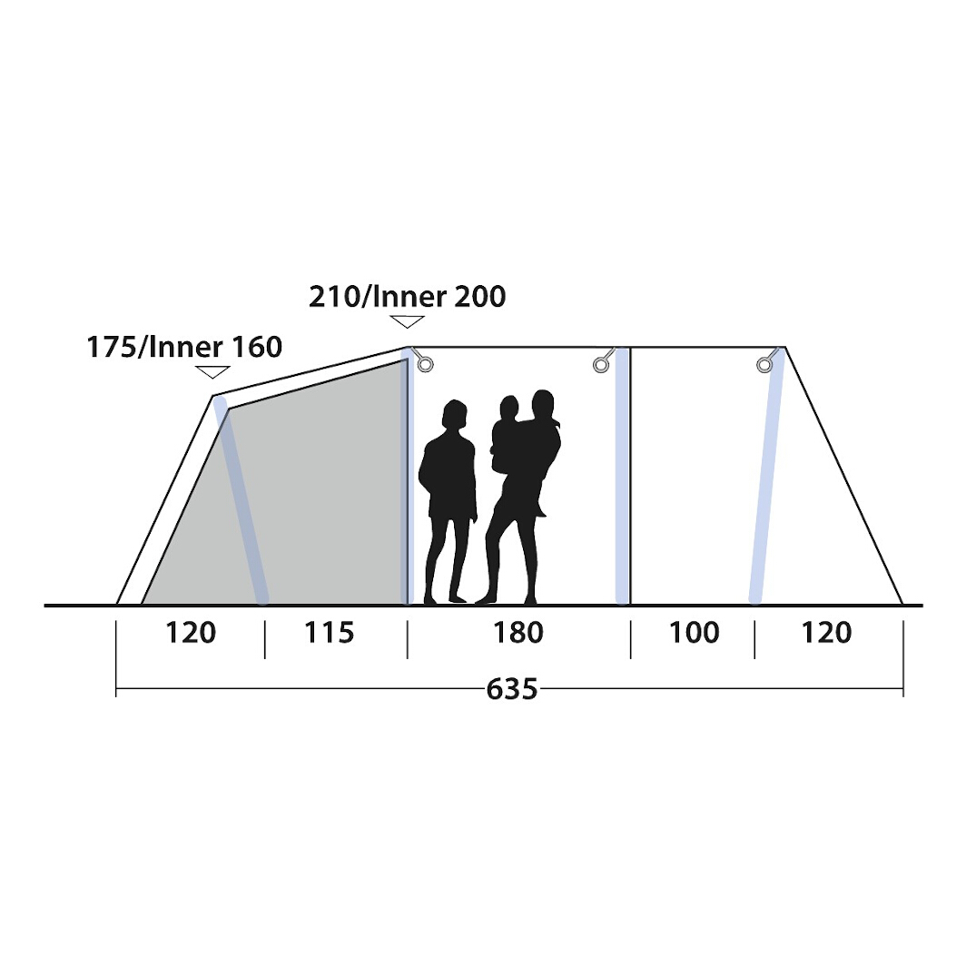| Loftshøjde | 210 cm, Indertelt 200 cm |