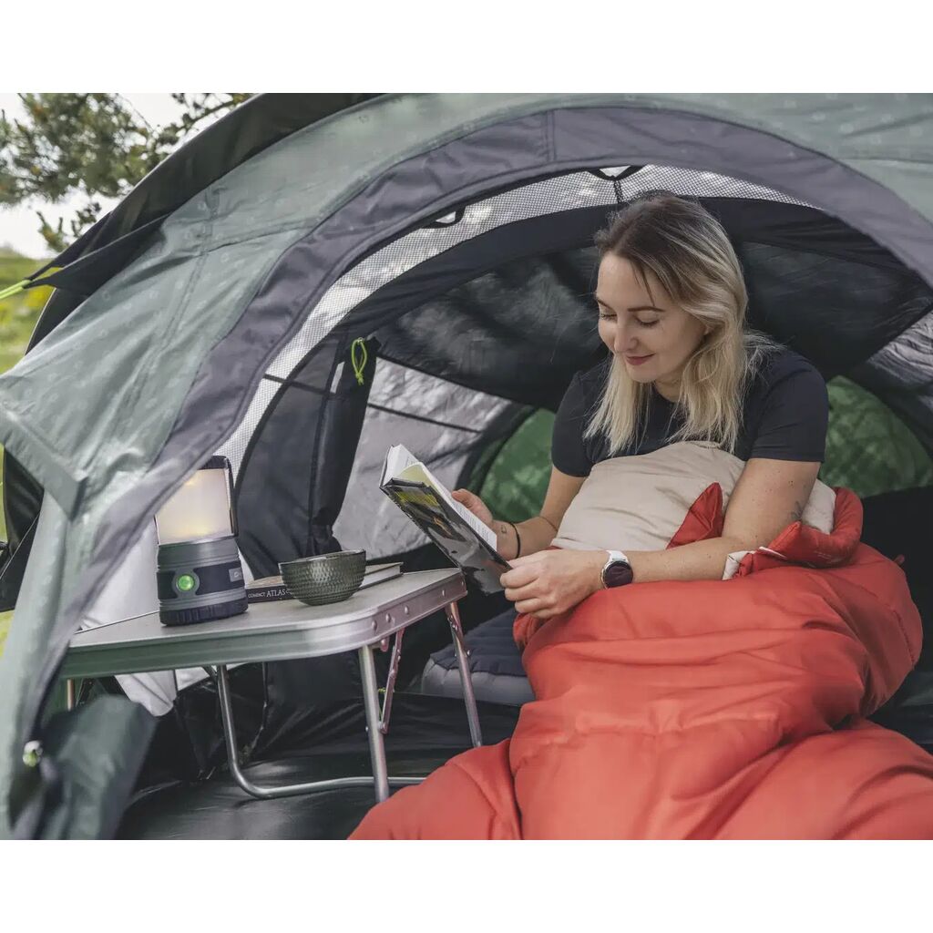 Sovekabinen er helt forseglet med slidstærk bund og insektnet i ventilationen. Et kraftigere mørkt stof i hele sovekabinen minimerer effekten af mange teltcampisters værste fjende – morgensolen.