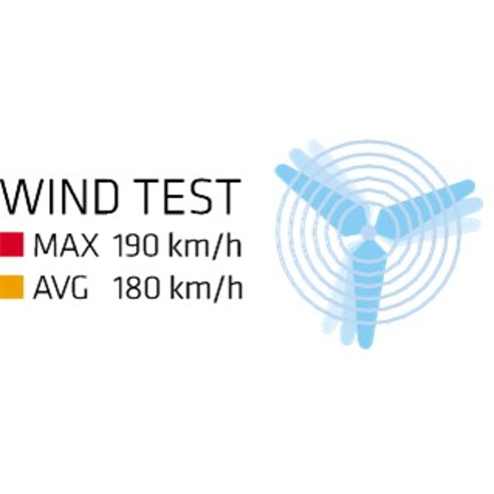 - Stabil, testet til vindstød på op til 190 km/t