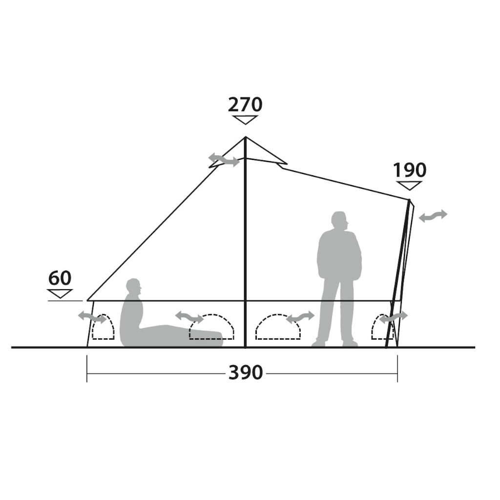 Teltet er let tilgængeligt gennem den store A-formede åbning og på trods af midterstængerne er det takket være det høje tag i midten rummeligt og nemt at bevæge sig rundt i. Døren er beskyttet af en overgangskant, som gør at det kan holdes åben selv i let regn. Døren er opdelt i to dele, så du kan vælge, hvor meget du vil åbne op. Begge døre er monteret med netvinduer.