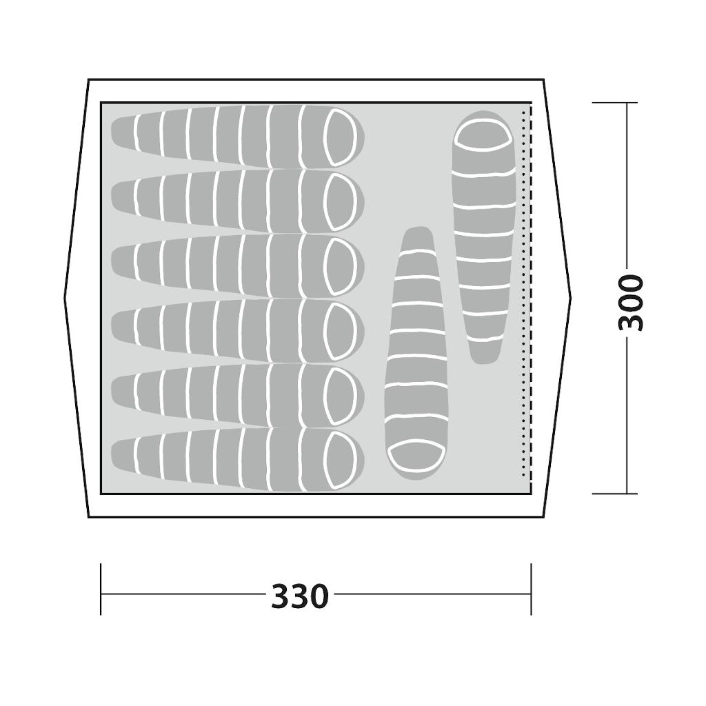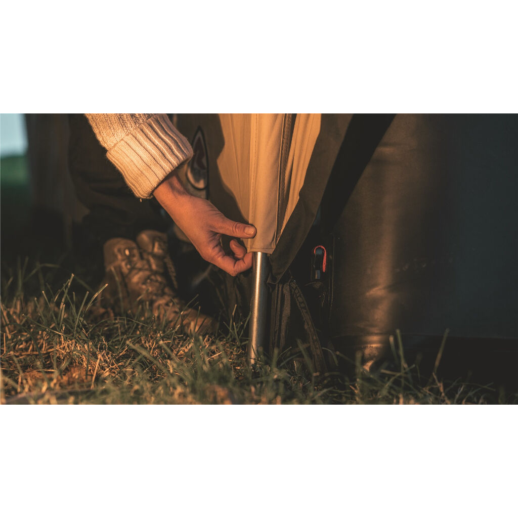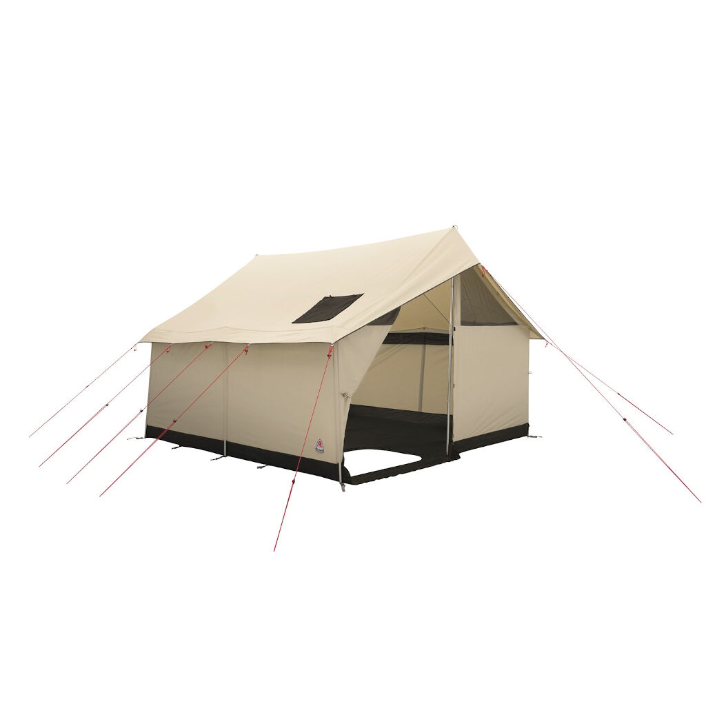 Rummeligt lejrtelt til op til 8 personer med slidstærkt stof i teknisk bomuld, solidt gulv og stabilt stålstel. Teltet kan suppleres med et indertelt til 5 personer, en teltovn og en presenning, der er monteret foran.