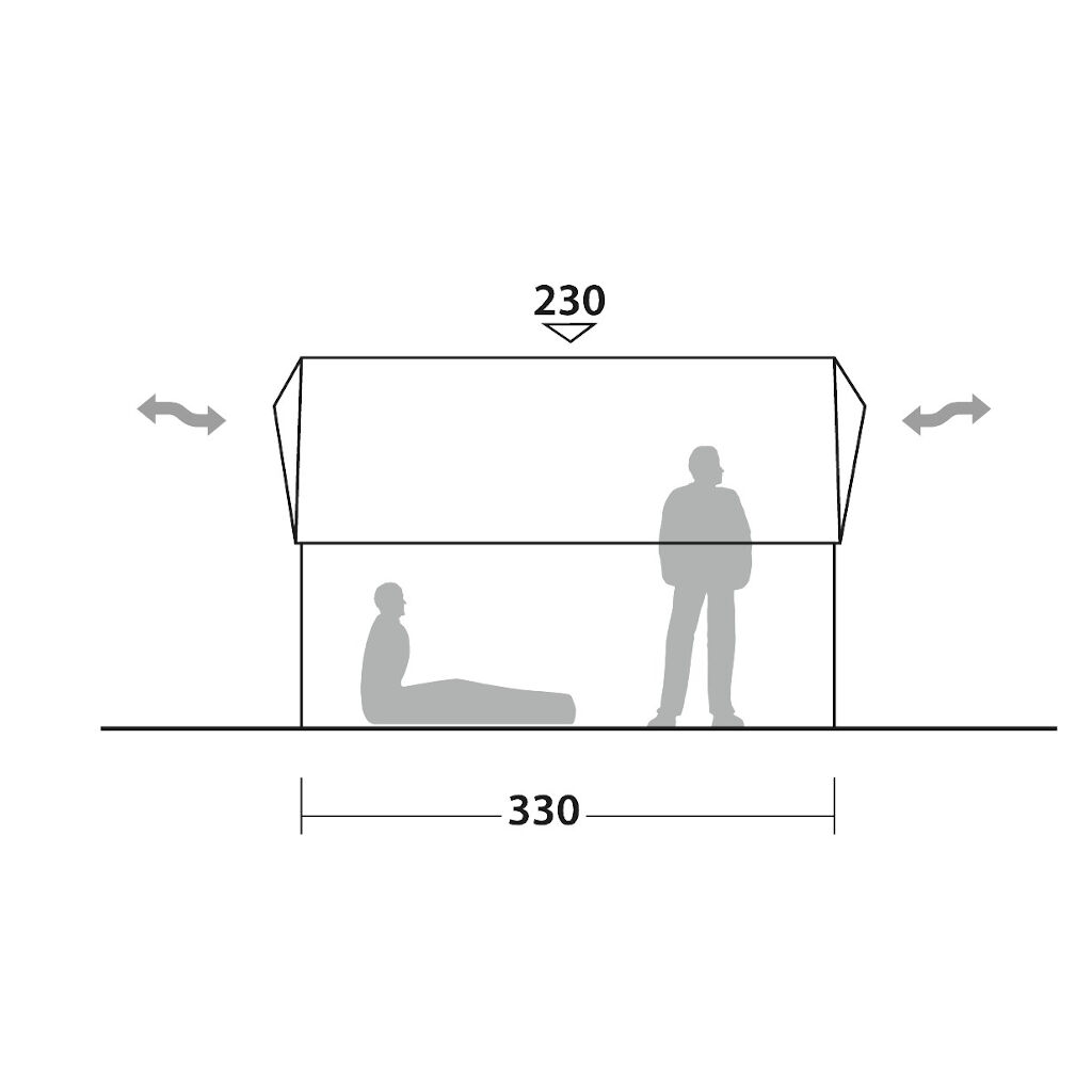 Ved at bruge presenningen, der fås som tilbehør, kan du samle to telte og få en beskyttet passage mellem teltene.