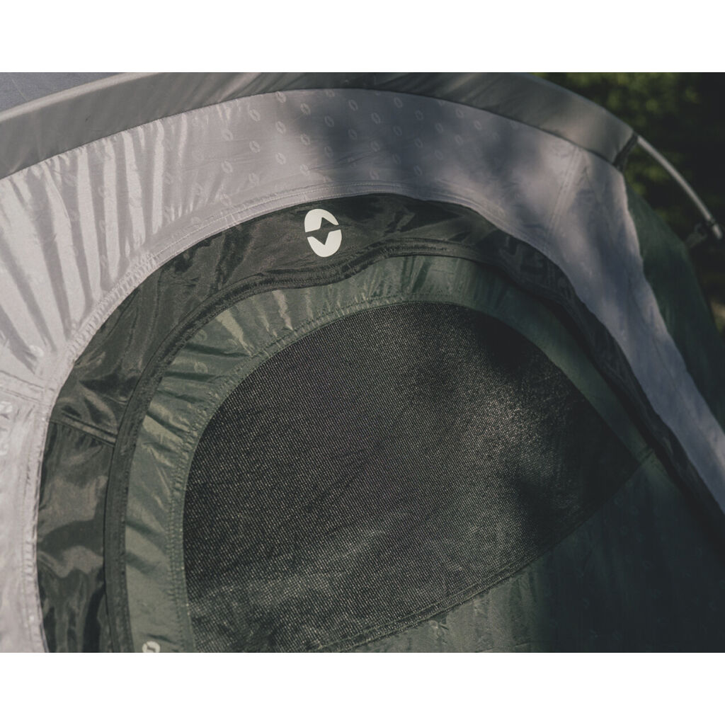 Sovekabinen er helt forseglet med slidstærk bund og insektnet i ventilationen. Et kraftigere mørkt stof i hele sovekabinen minimerer effekten af mange teltcampisters værste fjende – morgensolen.