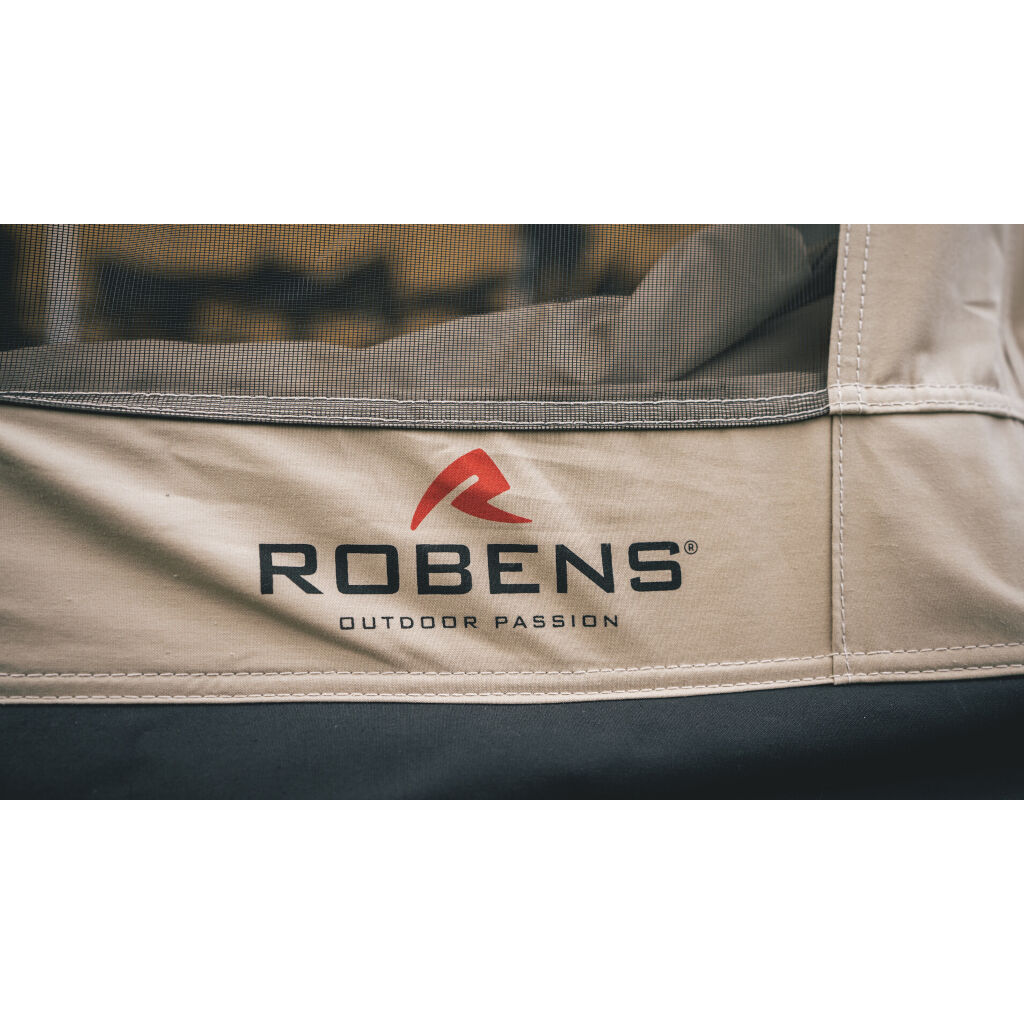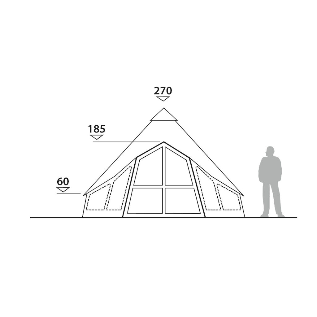 Settler Field fra Robens er et rummeligt campingtelt, der rummer op til seks personer. Dette tipitelt er lavet af en kombination af bomuld og polyester, hvilket giver et luftigt og behageligt indeklima. De store vinduer og de mange ventilationsåbninger bidrager desuden til en frisk og hyggelig atmosfære inde i teltet.