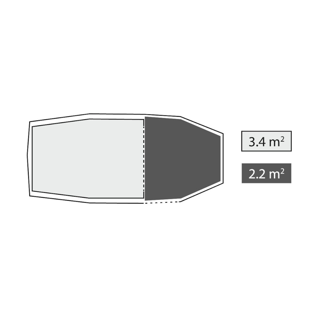 Slidstærkt 3-personers telt med en meget holdbar ripstop-dug, aluminiumstænger og et stort apsisområde. Apsisen er stor nok til både opbevaring af oppakning, beskyttelse mod regn eller madlavning. Perfekt til de hårdere ture eller til dem, der søger et virkelig pålideligt telt til en god pris.