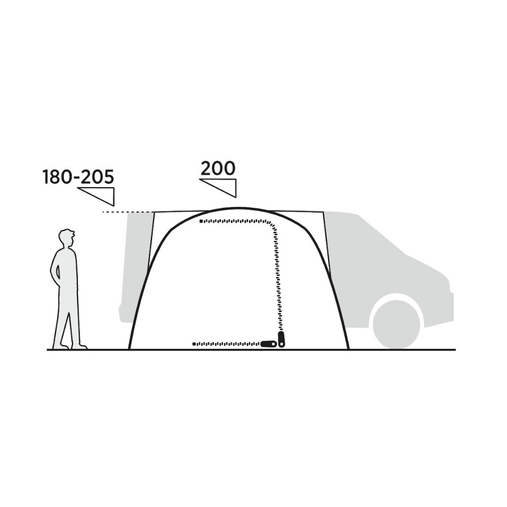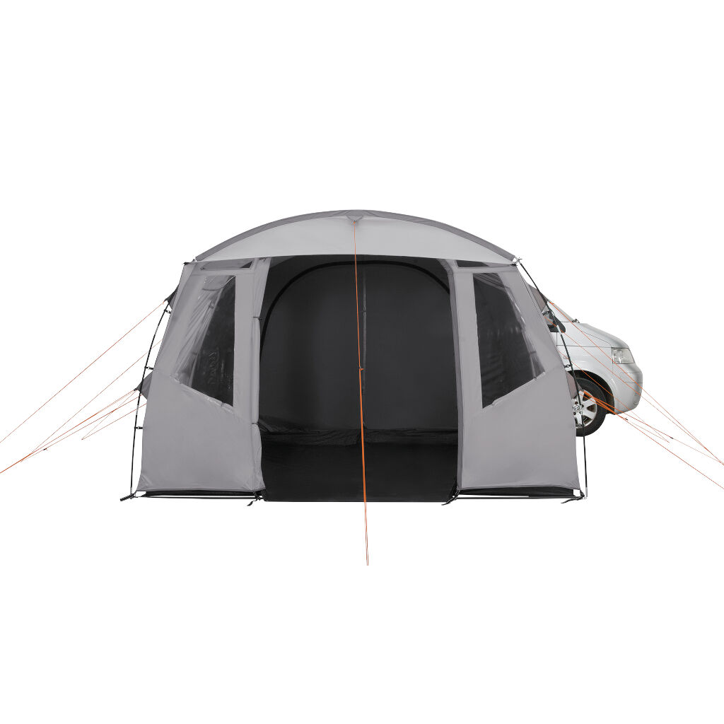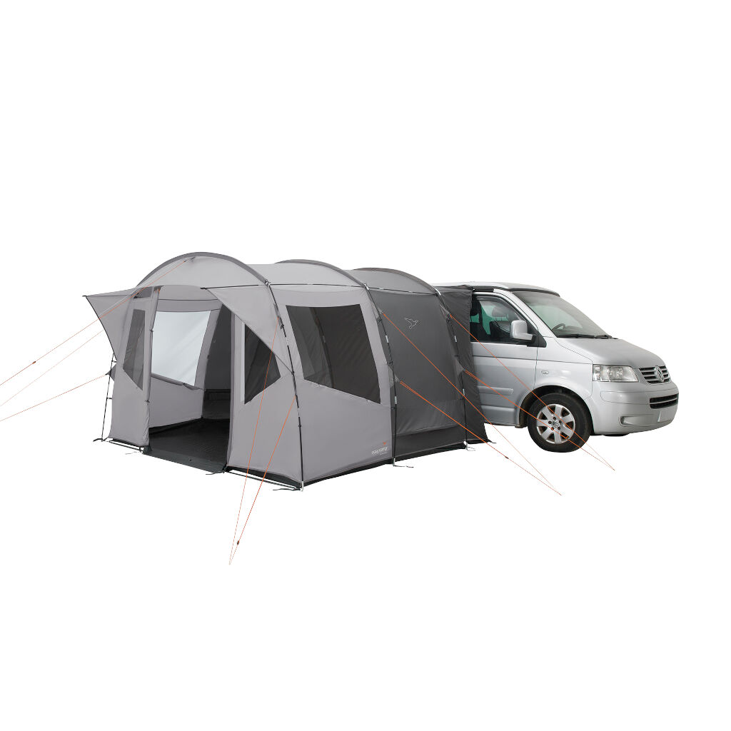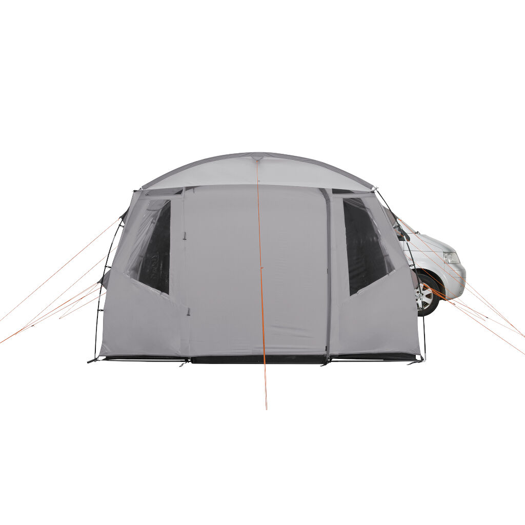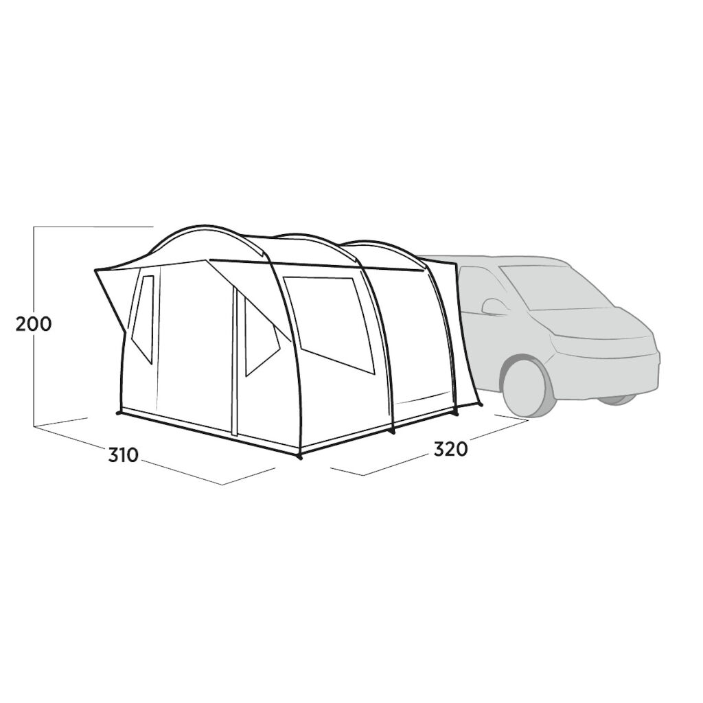 Praktisk og fritstående bustelt, der passer til minibusser, biler og autocampere. Det kan nemt suppleres med et indertelt til to personer og skaber en komfortabel ekstra plads ved camping. Teltet forbindes til køretøjet via en praktisk sluse, der beskytter mod regn og vind, samtidig med at det har en separat dør til at lukke mellem bilen og teltet. Perfekt til dagsture, da teltet kan blive stående på campingpladsen, mens bilen er i brug. Passer til køretøjer med en højde mellem 180 og 205 cm.
