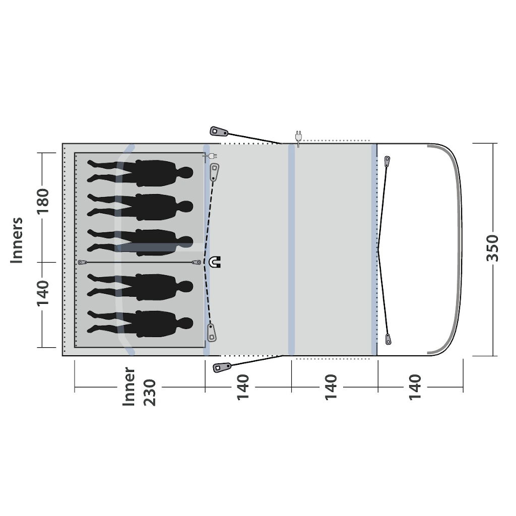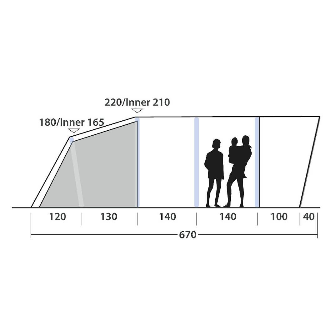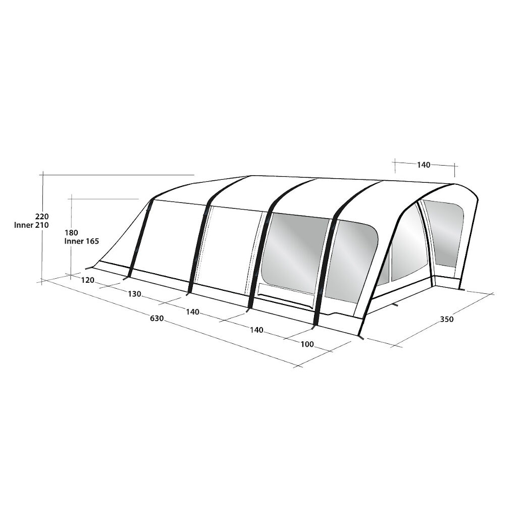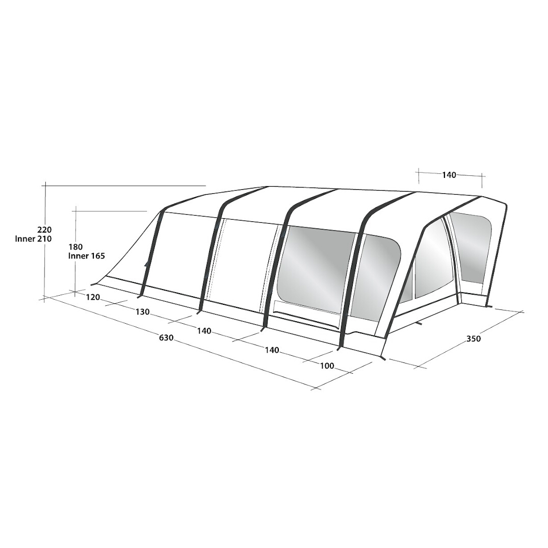 - Forstærkninger på udsatte steder på dugen og Outwell Rigid Air System betyder, at teltet kan modstå ekstreme vindstyrker på op til 28 m/sek