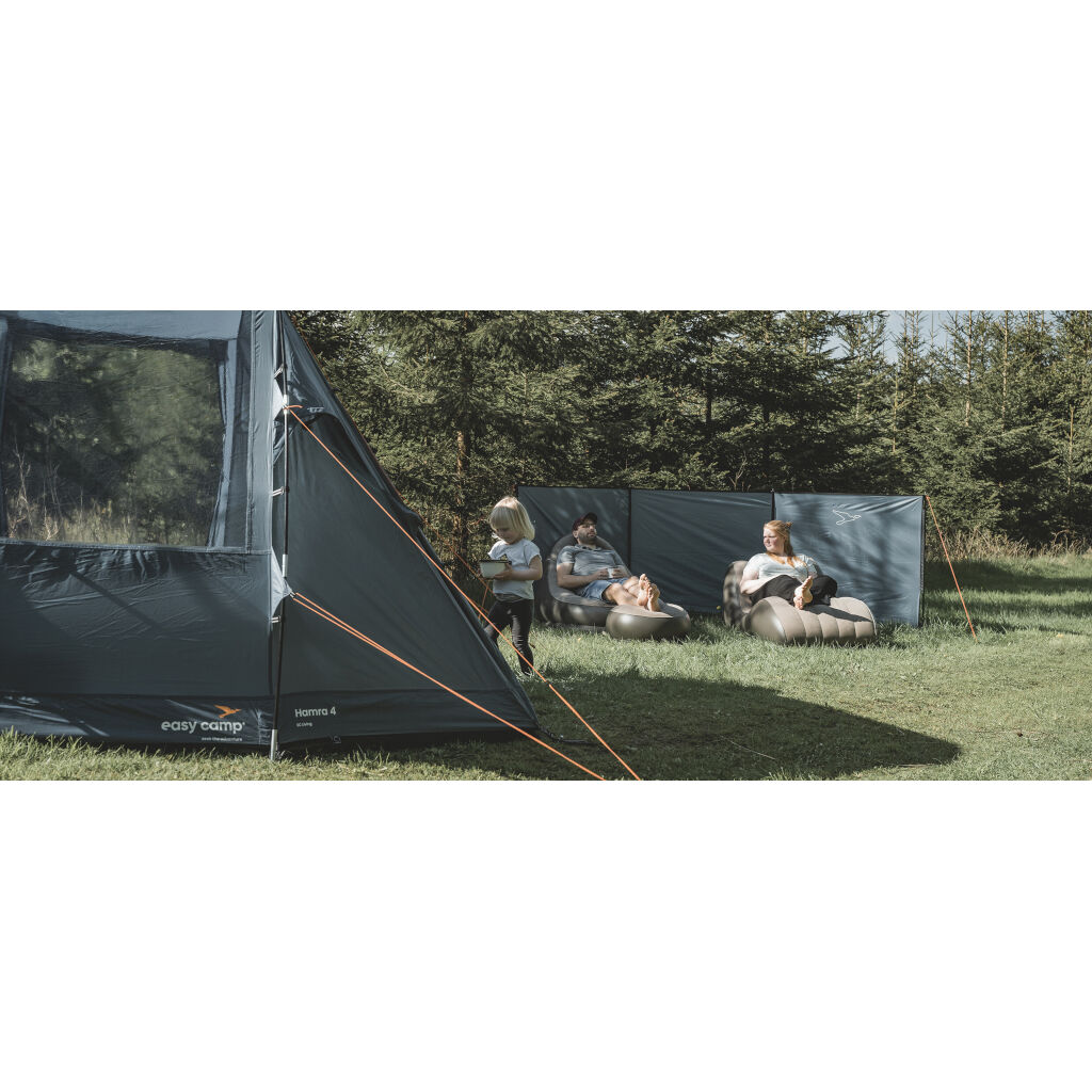 Easy Camp Hamra kombinerer de bedste funktioner fra to af 2024's mest populære telte – Huntsvilles optimerede opholdsrum og Palmdales fastsyede gulv samt mørke sovekabiner. Dette resulterer i et prisvenligt og funktionelt familietelt med komfort og detaljer, der ellers ofte findes i dyrere modeller. Teltet har en kraftig dug med tapede sømme for beskyttelse mod regn og blæst. Det fastsyede gulv sikrer, at træk og insekter holdes ude. Den store sideindgang med myggenetdør forbedrer tilgængeligheden og giver ekstra ventilation på varme dage. Sovekabinerne har mørke vægge og loft for at reducere lysindtrængning og forbedre søvnkvaliteten. Opbevaringslommer, stormlineholdere og farvekodede stænger gør teltet både praktisk og let at sætte op. Med ståhøjde i opholdsrummet og kabelgennemføring er Hamra 4 en fremragende campingpartner for familier, der søger et stabilt, funktionelt telt til en yderst konkurrencedygtig pris!
