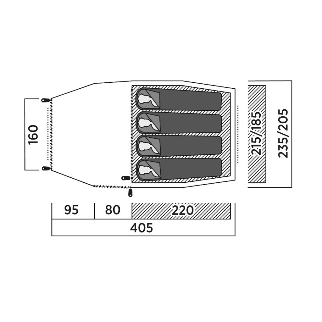 Pasvik 4 er et rummeligt og prisvenligt 4-personers telt. Teltet har en vandtæt dug med 3000 mm vandsøjletryk og tapede sømme for god beskyttelse mod regn.