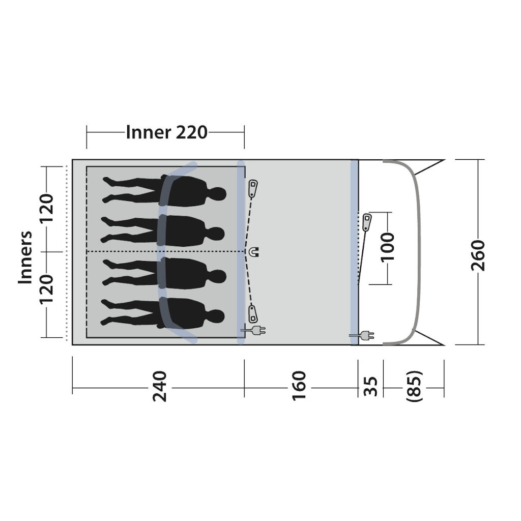 - Outwell Hook Track System – hæng lamper eller udstyr op til 1,5 kg langs skinnen (kroge inkluderet)